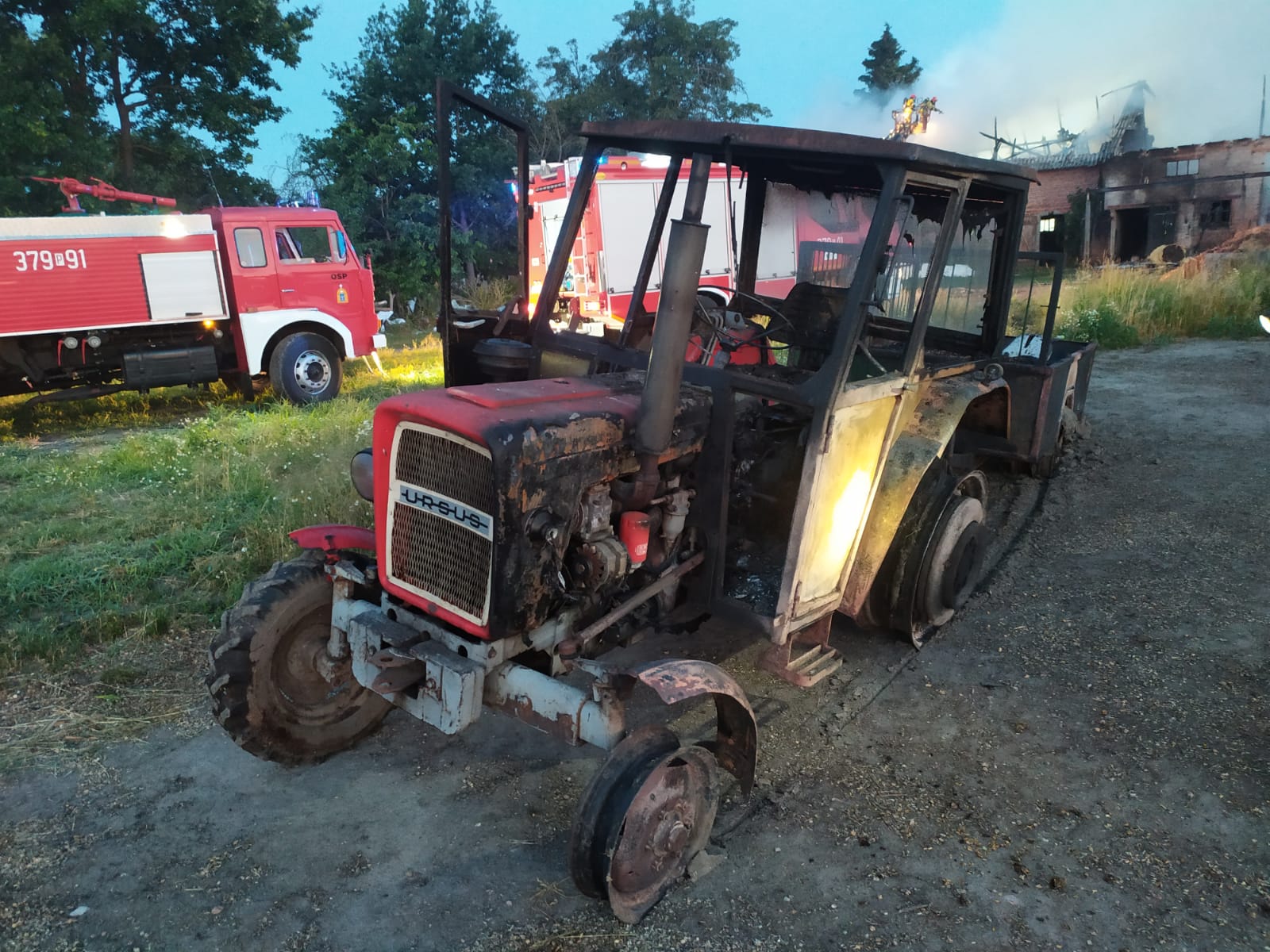 Po przybyciu na miejsce zdarzenia stwierdzono objęty całkowicie pożarem budynek inwentarski przeznaczony na hodowlę bydła i trzody chlewnej oraz w pozostałej części do składowania płodów rolnych.