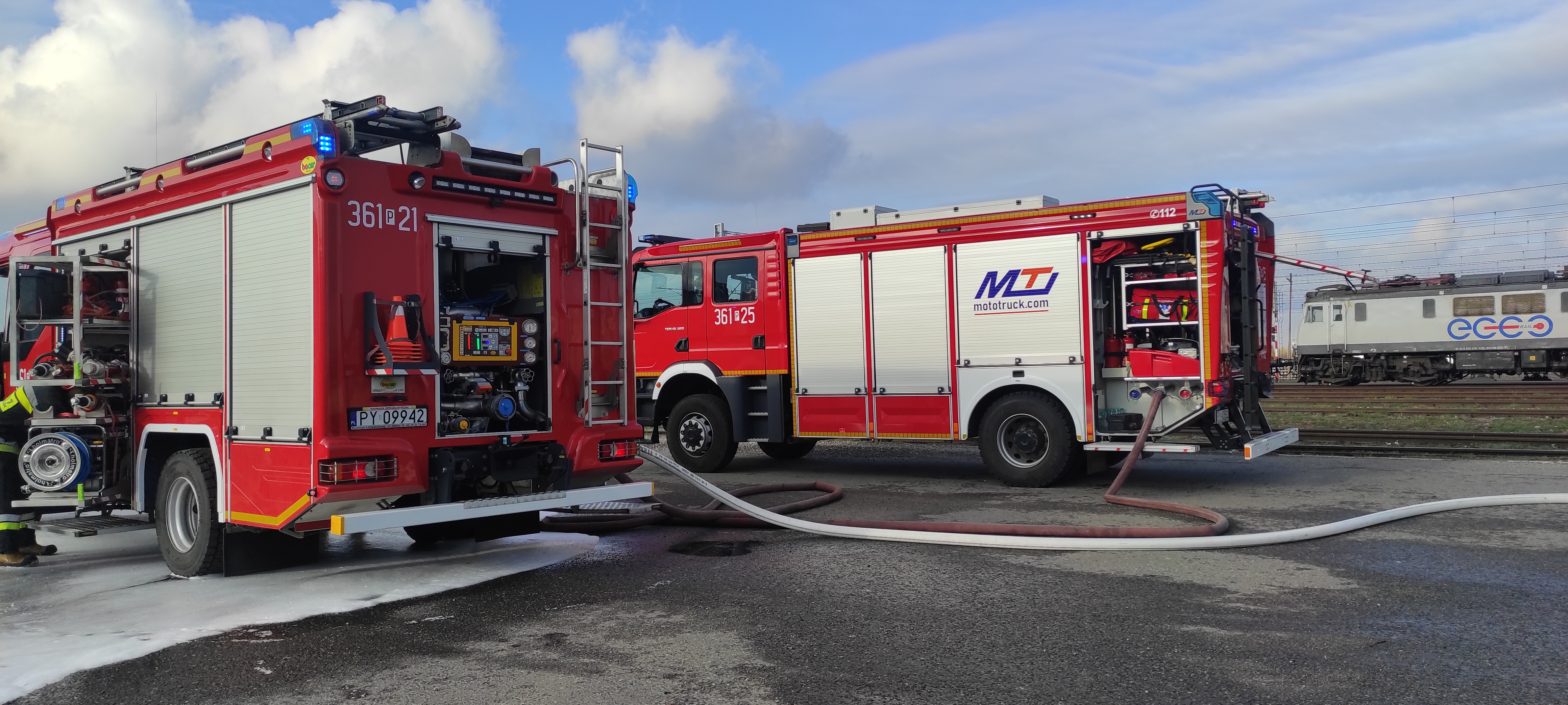 Po przybyciu na miejsce zastano całkowicie objętą pożarem kabinę ciągnika siodłowego, który zaparkowany był na placu przy torach kolejowych.
