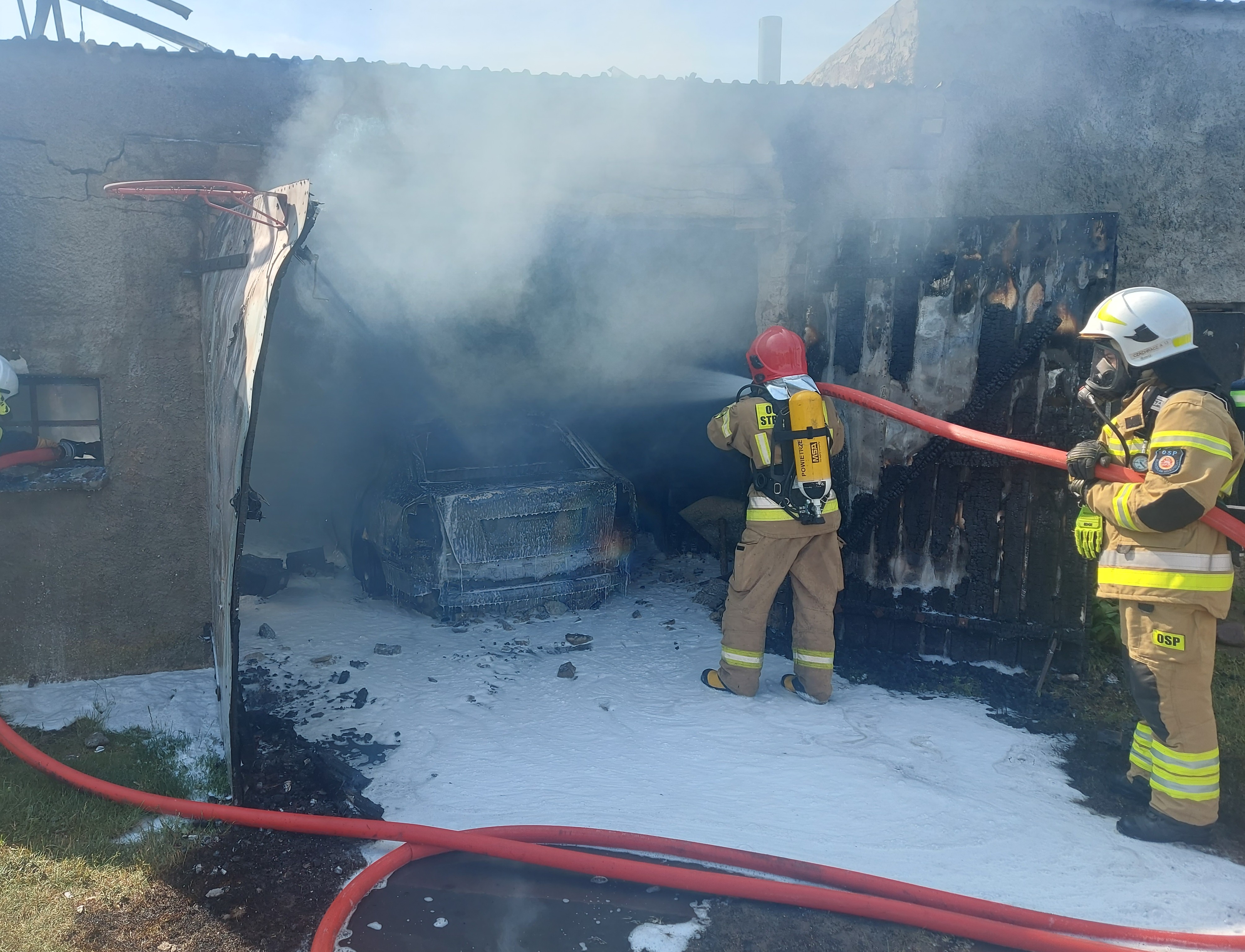 Pożar garażu z samochodem osobowym w Nieborzynie
