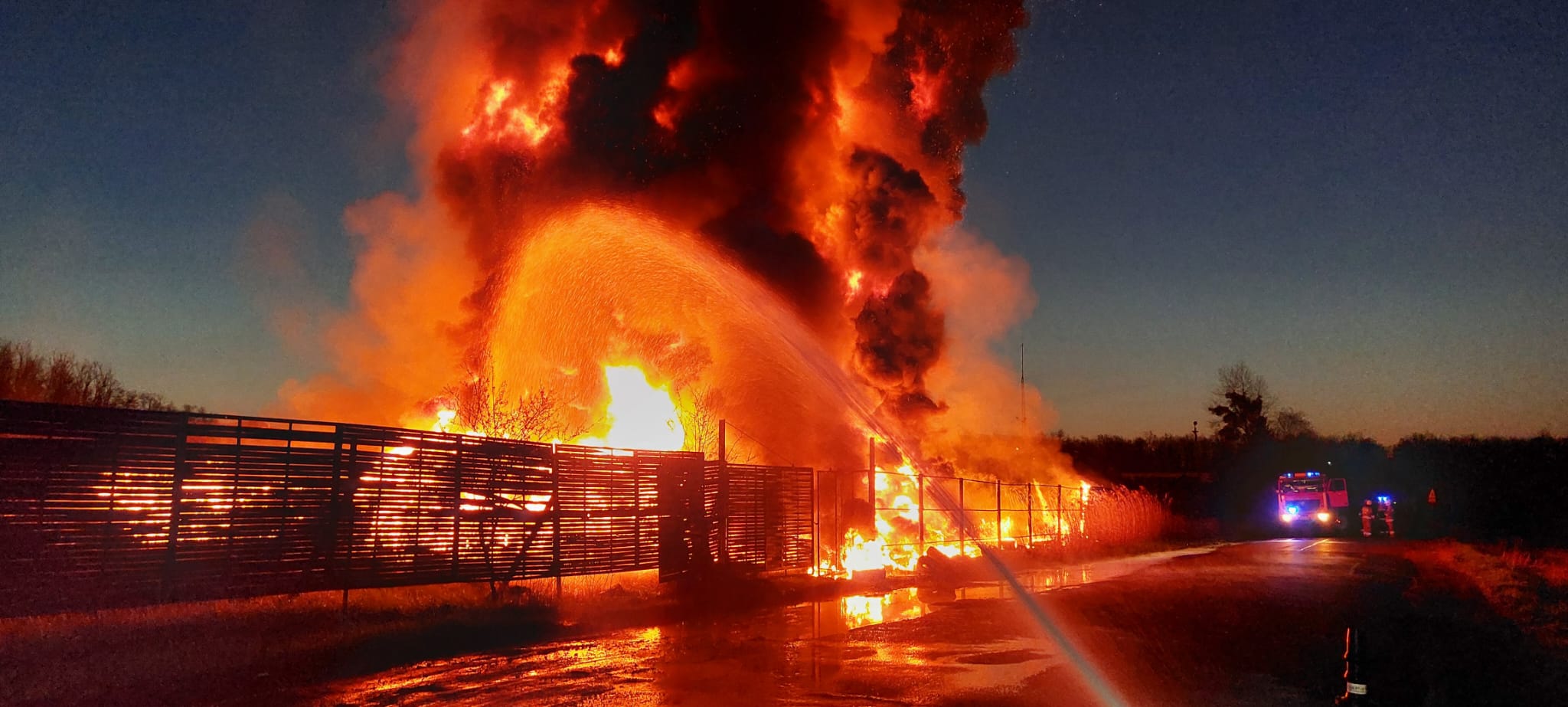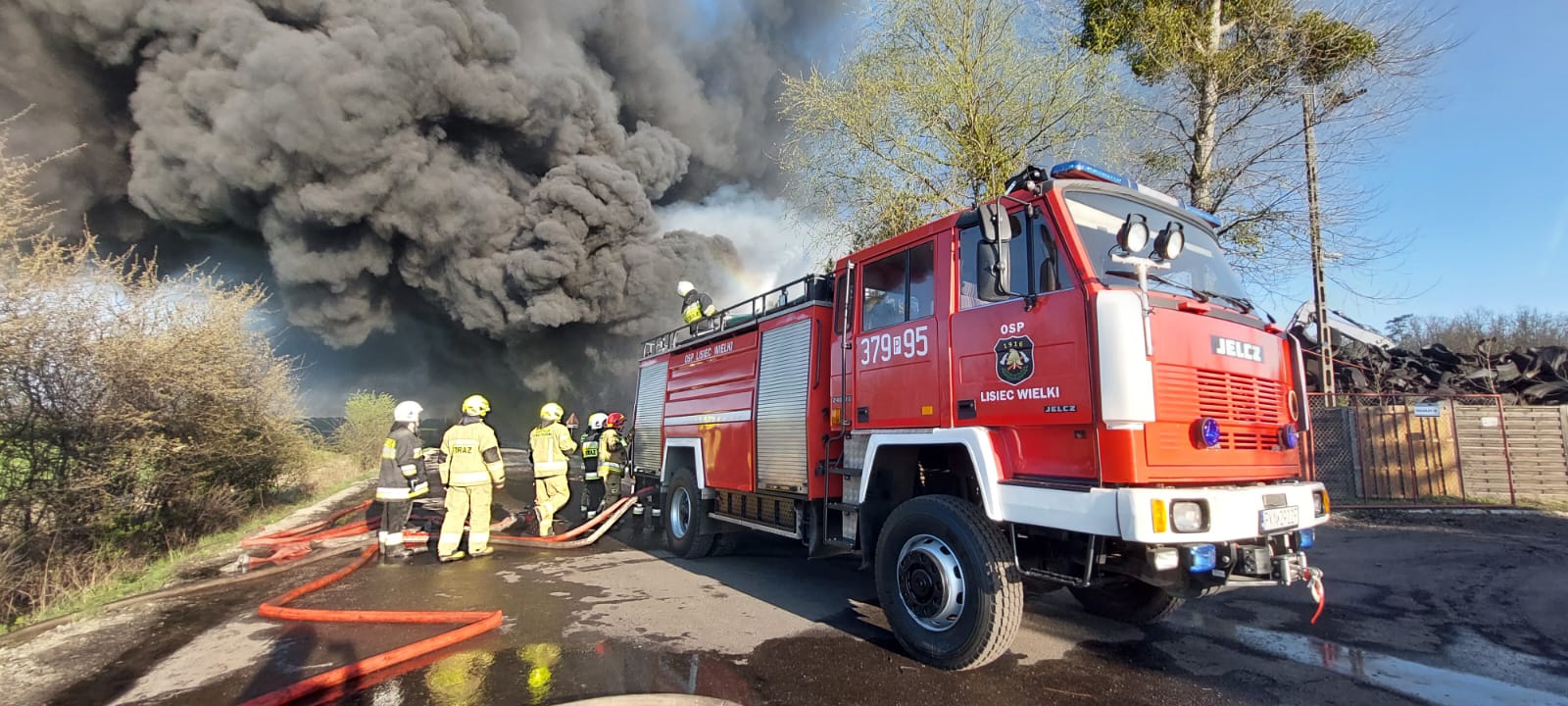 Po przybyciu na miejsce zdarzenia stwierdzono pożar opon oraz tworzyw sztucznych zgromadzonych w pryzmach na składowisku odpadów. Panowało bardzo duże zadymienie oraz wysoka temperatura. Kłęby dymu były widoczne z kilkunastu kilometrów.