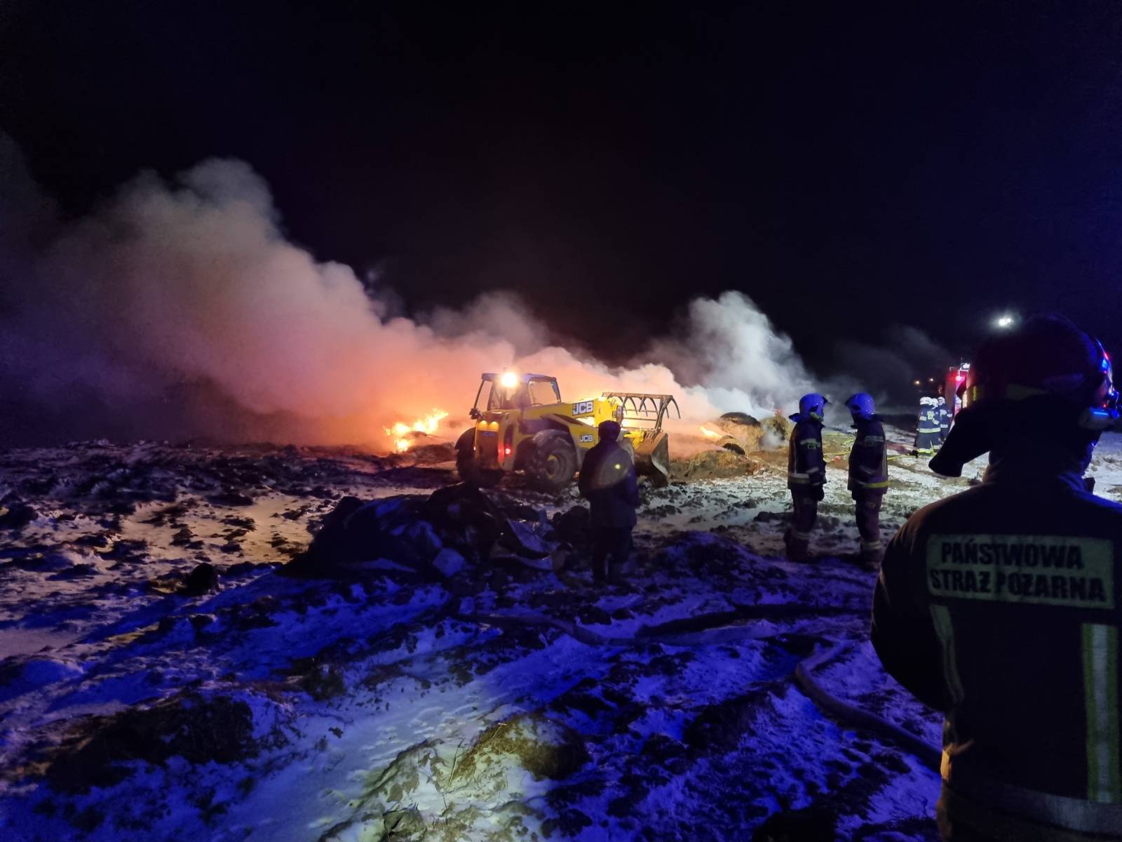 Działania strażaków polegały na rozgarnięciu i gaszeniu wodą palącej się słomy. W wyniku pożaru spaleniu uległo około 40 szt. balotów słomy.