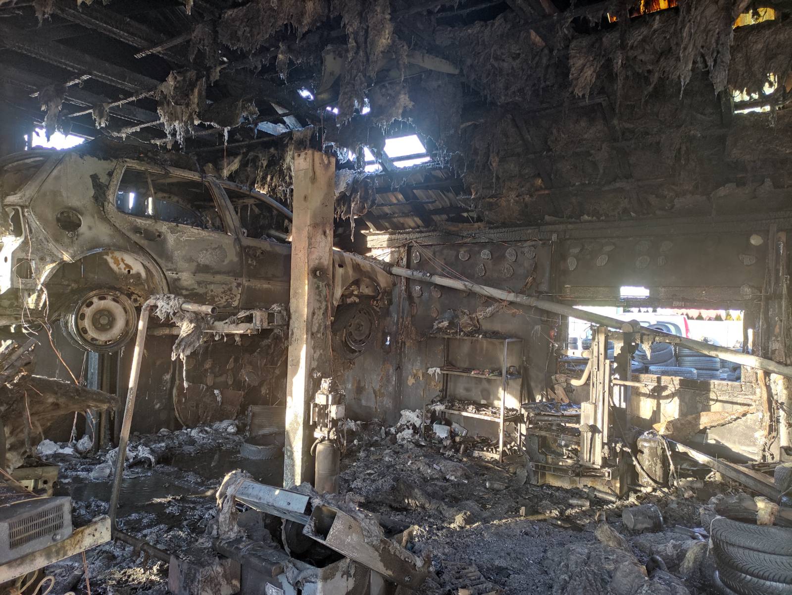 W dalszej kolejności przystąpiono do dogaszania zniszczonych i spalonych elementów wyposażenia warsztatu.