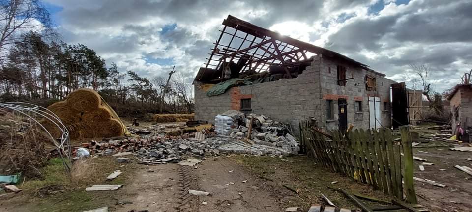 W miejscowości Stara Ciświca, gmina Grodziec uszkodzeniu uległ tunel, w którym znajdowało się ok. 13 tyś. kaczek. Niestety część drobiu padła, natomiast pozostałe kaczki zostały ewakuowane do sąsiednich budynków. Ponadto silny wiatr uszkodził dach budynku kościoła w Królikowie i Grochowach oraz Szkoły Podstawowej w Milinie. Zerwany został również dach kurnika w Rychwale.