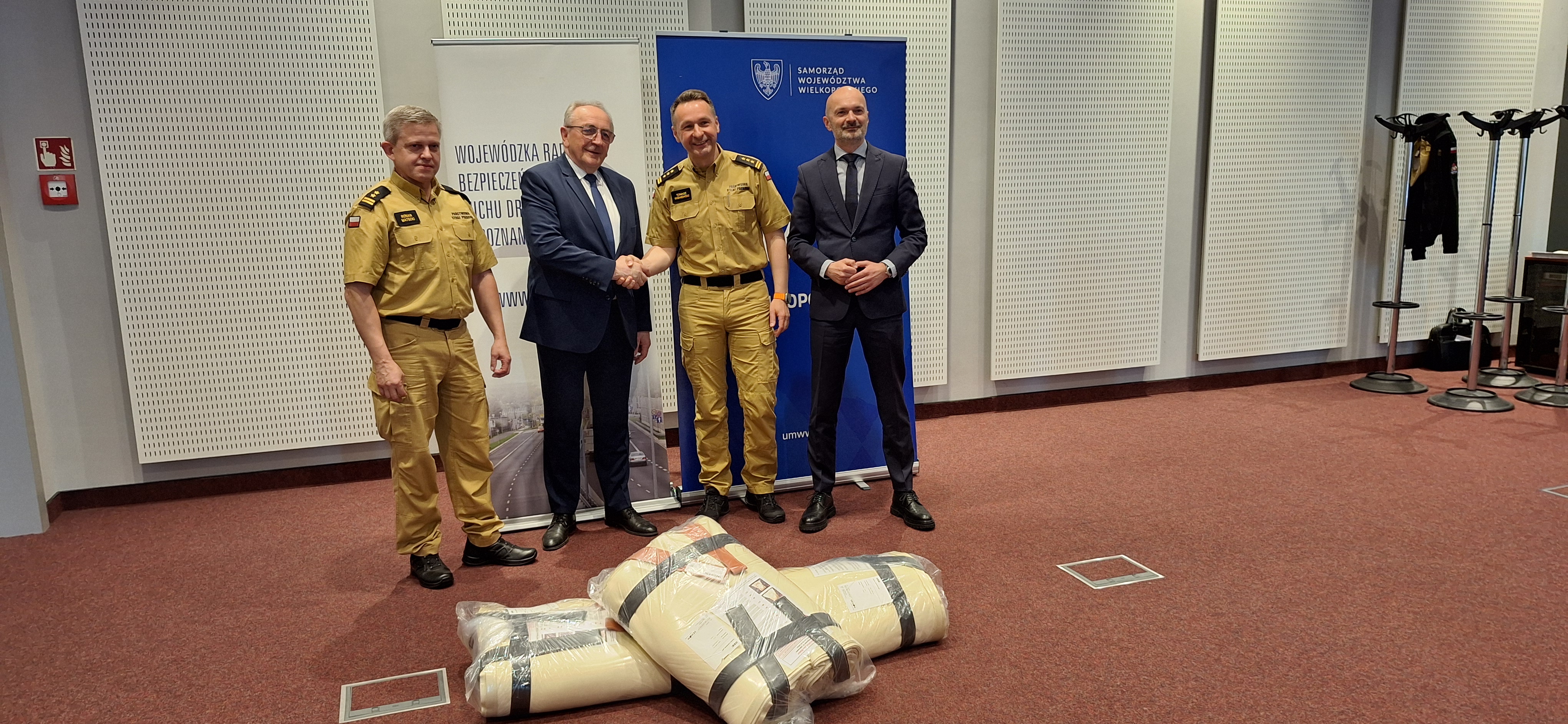29 kwietnia 2025 r. w siedzibie Urzędu Marszałkowskiego Województwa Wielkopolskiego odbyło się uroczyste przekazanie profesjonalnych płacht gaśniczych dla wielkopolskich strażaków.