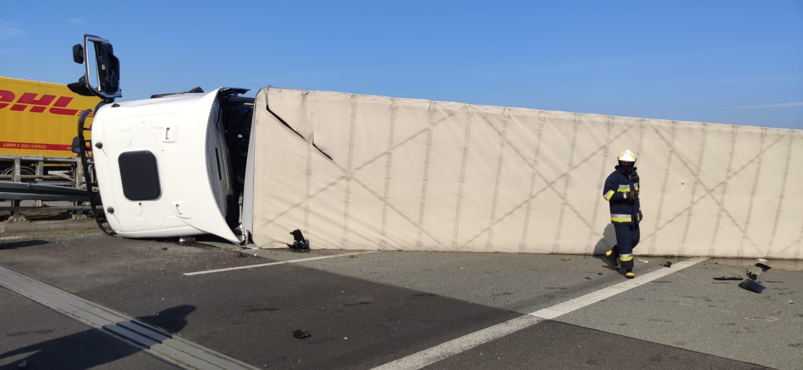 Po przybyciu na miejsce zdarzenia stwierdzono, że na 245 km znajduje się przewrócony samochód ciężarowy wraz z naczepą, który blokuje całą szerokość jezdni Autostrady A2 w kierunku Poznania. Kierowca znajdował się poza pojazdem i nie wymagał udzielenia pomocy medycznej. Ponadto stwierdzono wyciek oleju napędowego ze zbiornika samochodu ciężarowego.
