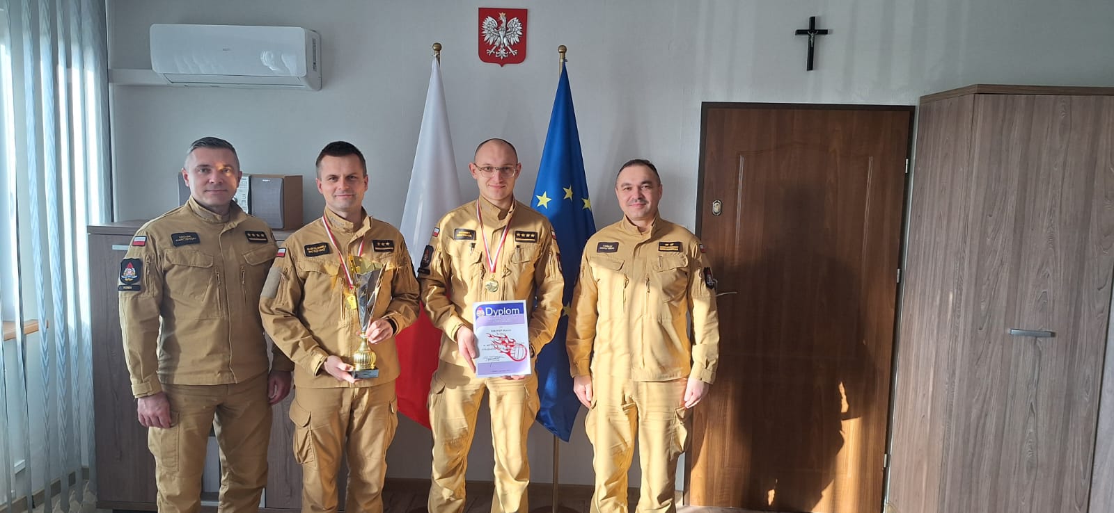 Komendant miejski Państwowej Straży Pożarnej w Koninie bryg. Tomasz Kruszyński wraz z zastępcą st. kpt. Michałem Karczewskim pogratulował strażakom kolejnej wygranej.