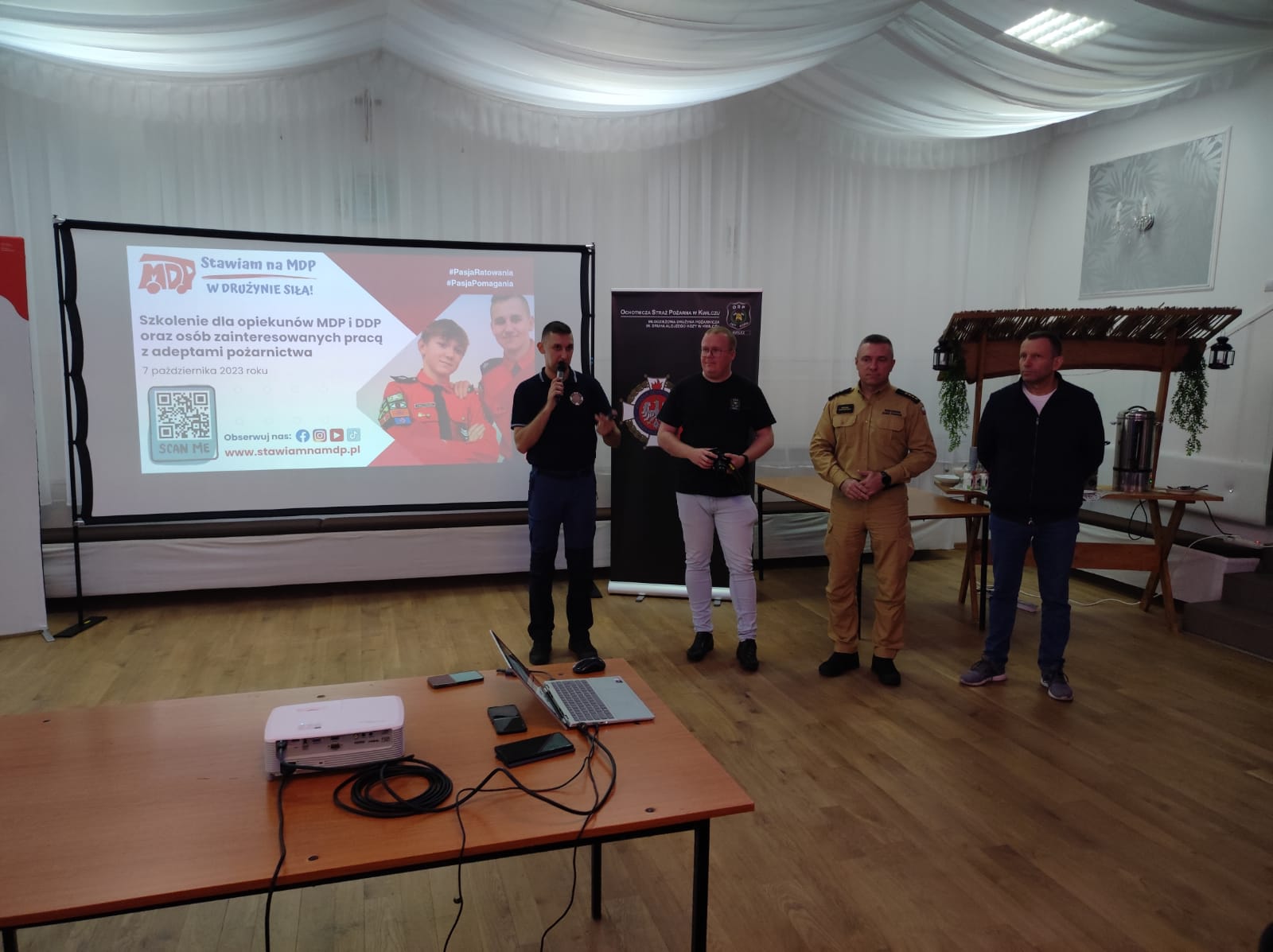 Podczas szkolenia dedykowanego dla druhów z Ochotniczych Straży Pożarnych z powiatu konińskiego, kaliskiego, kolskiego, słupeckiego, pleszewskiego i tureckiego przedstawiono zasady, proces tworzenia i funkcjonowania młodzieżowych i dziecięcych drużyn pożarniczych.