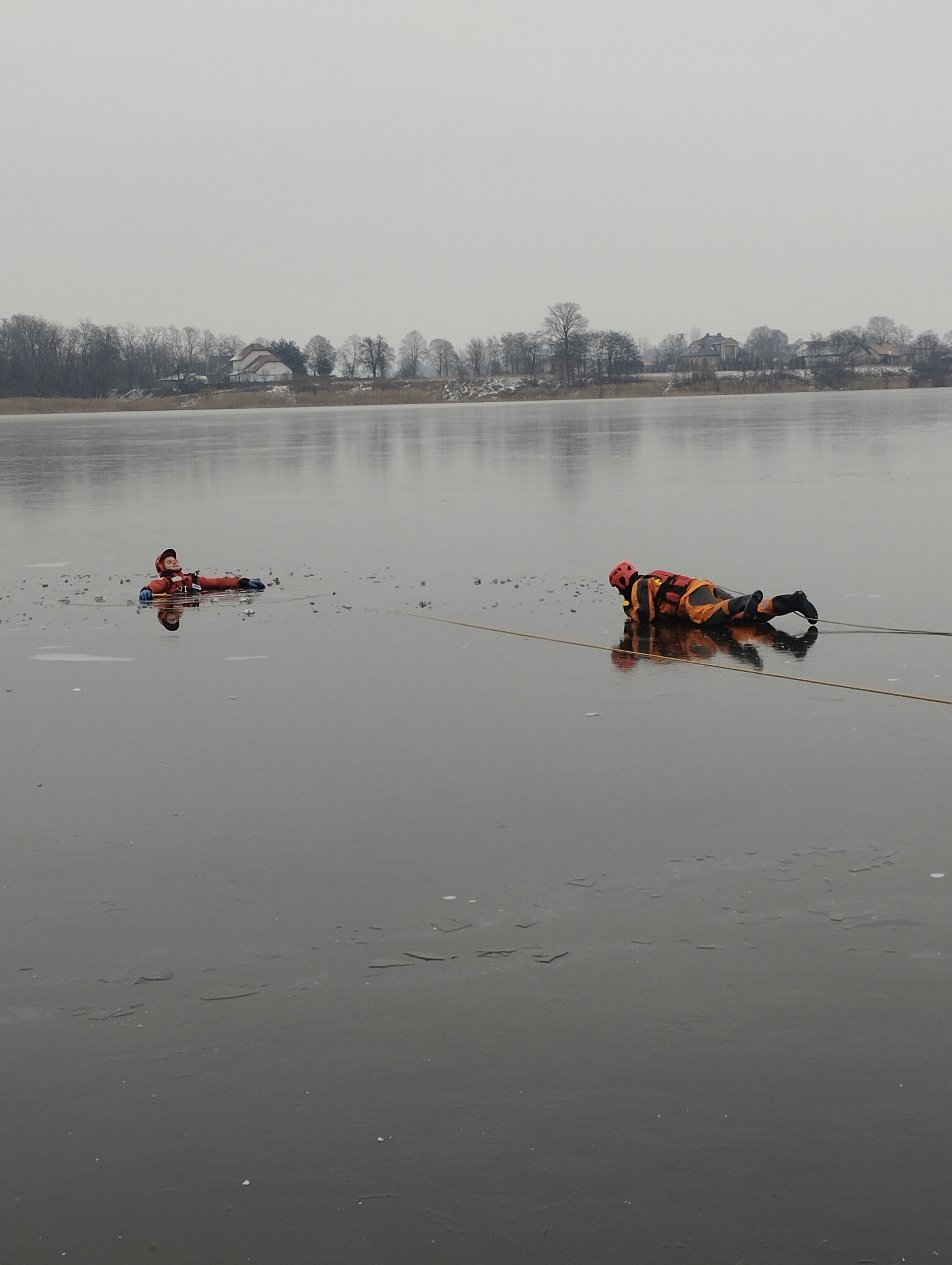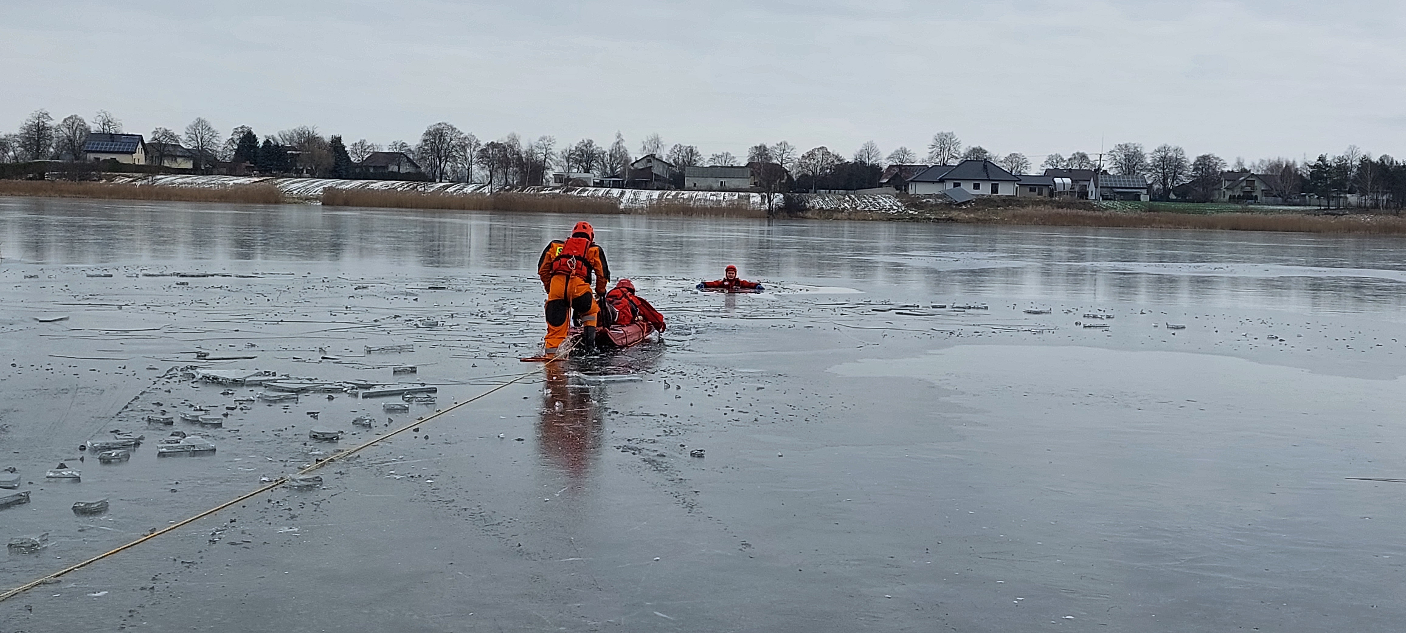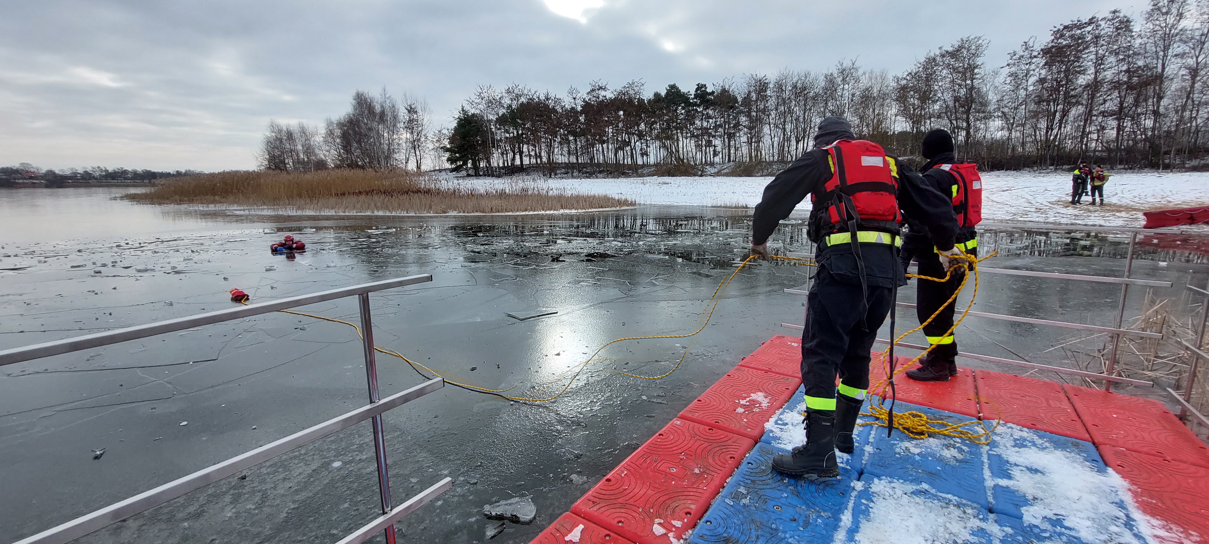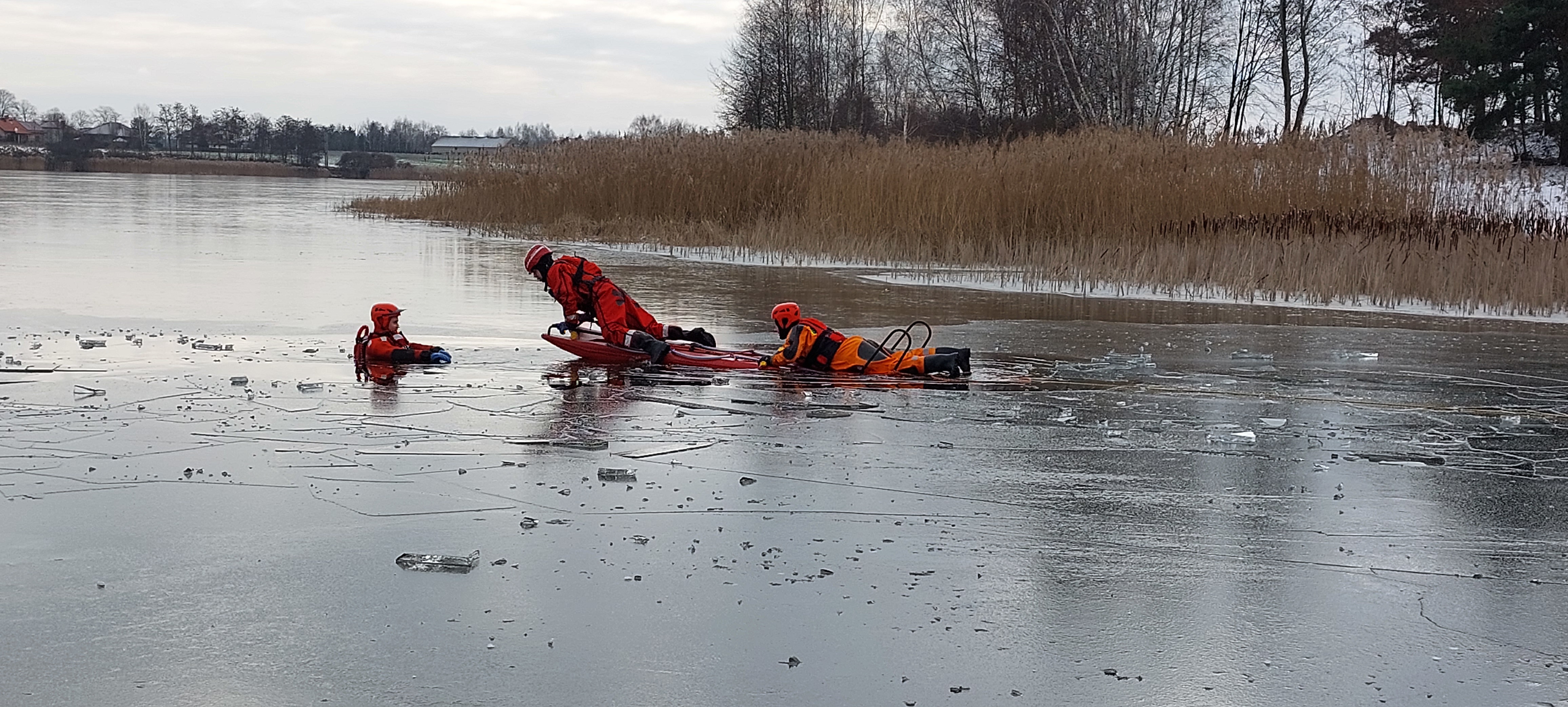 Strażacy przećwiczyli sposoby ratowania i podejmowania osób, pod którymi zarwał się lód, przy wykorzystaniu różnych technik i sprzętu, m.in. deski lodowej. Ratownicy podczas ćwiczeń pracowali w specjalistycznych ubraniach do pracy w wodzie.