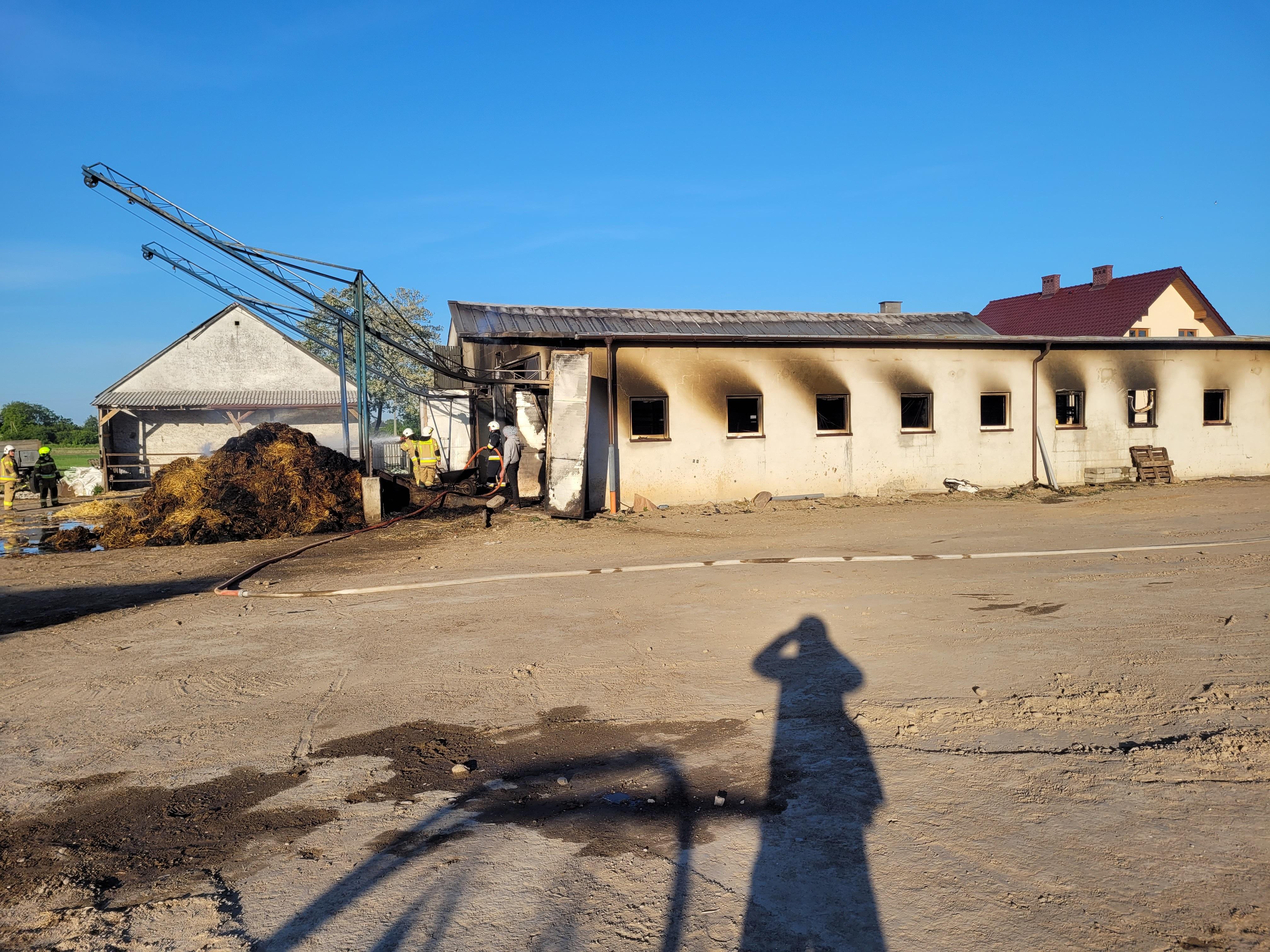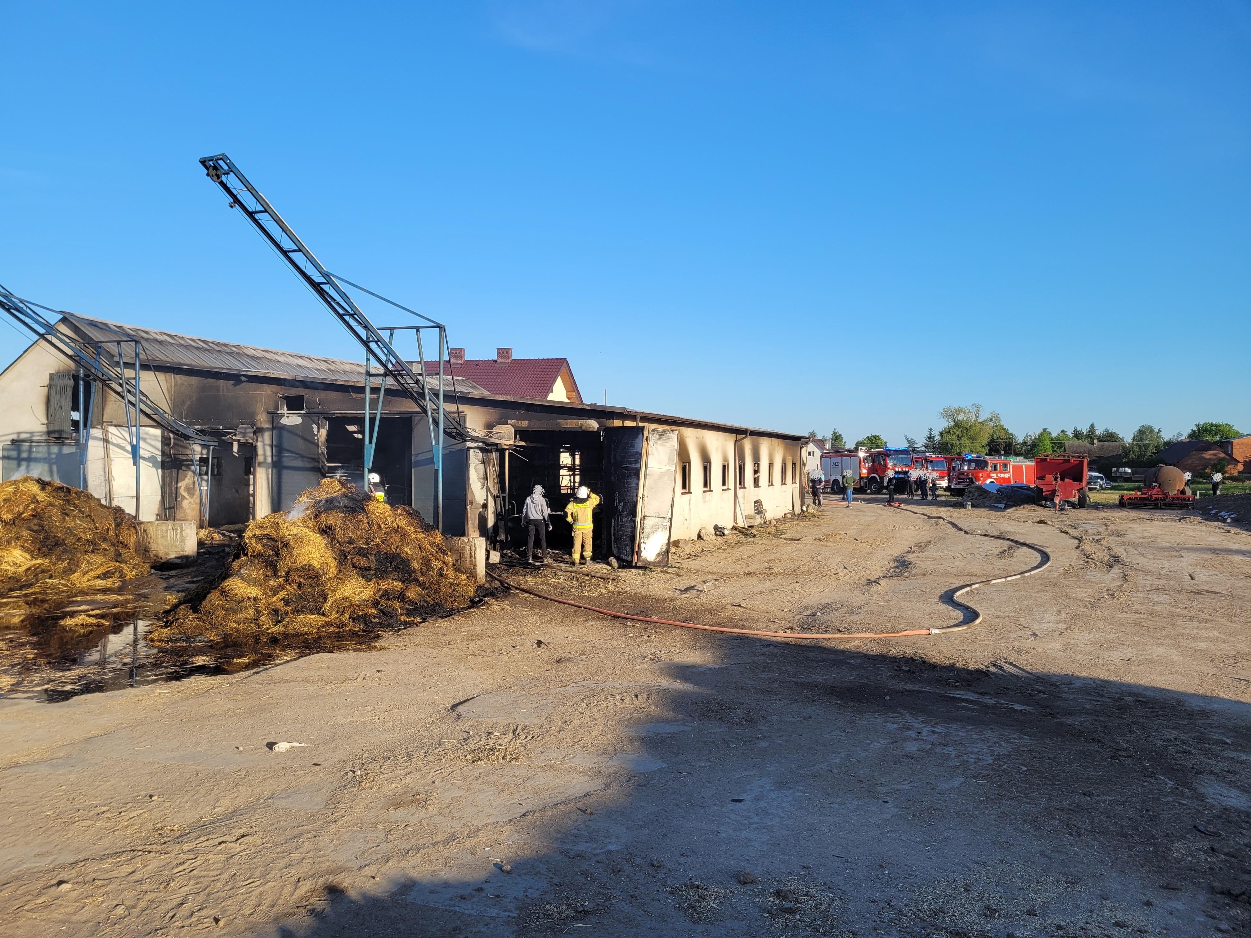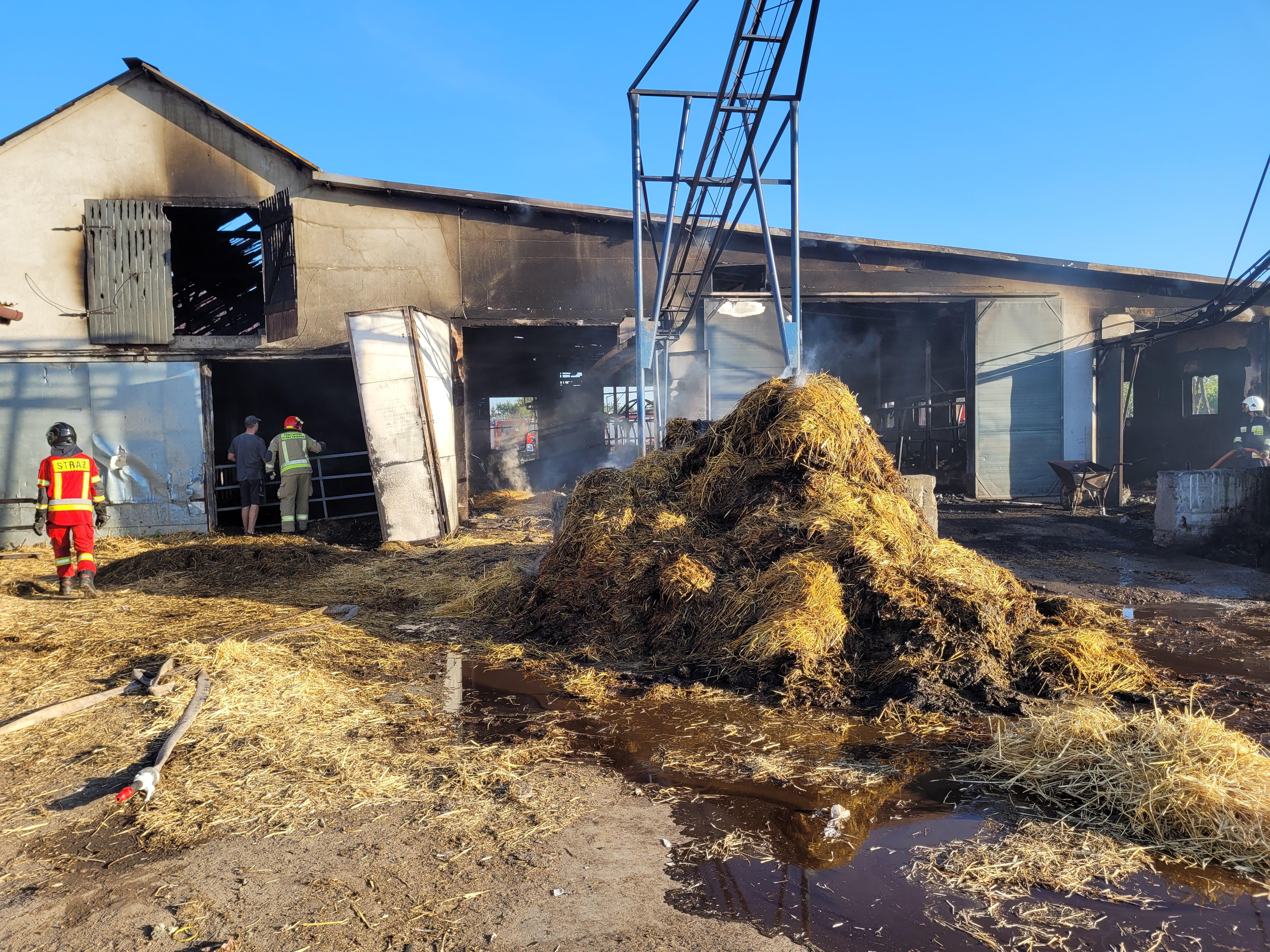 Działania strażaków polegały na podaniu wody na palący się budynek. Po dogaszeniu ognia w obiekcie znaleziono 38 martwych krów.