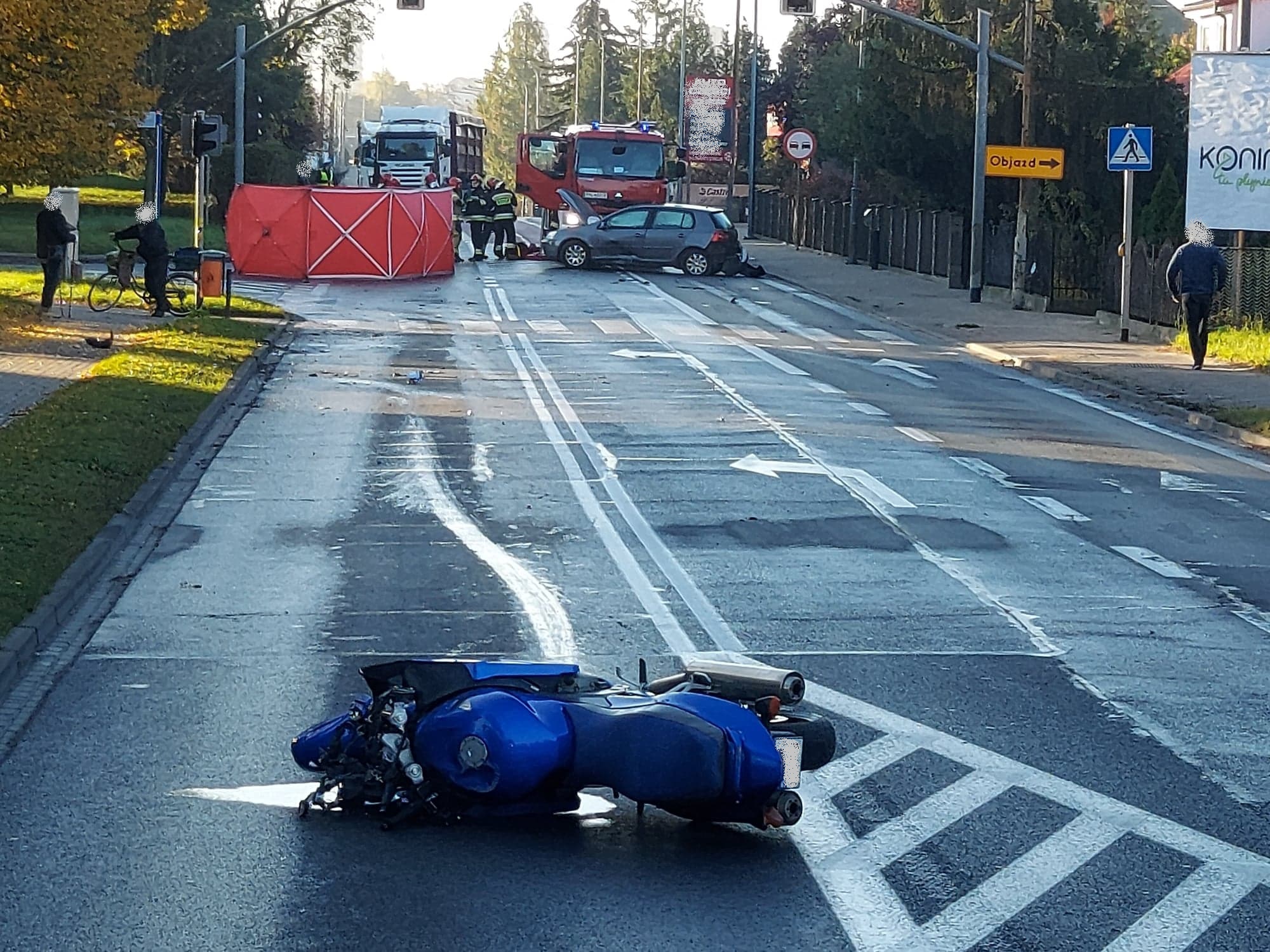 Tragicznie zakończyła się podróż motocyklisty na ul. Przemysłowej w Koninie. Do zdarzenia doszło po godz. 7.00 w dniu 28 października 2020 r.