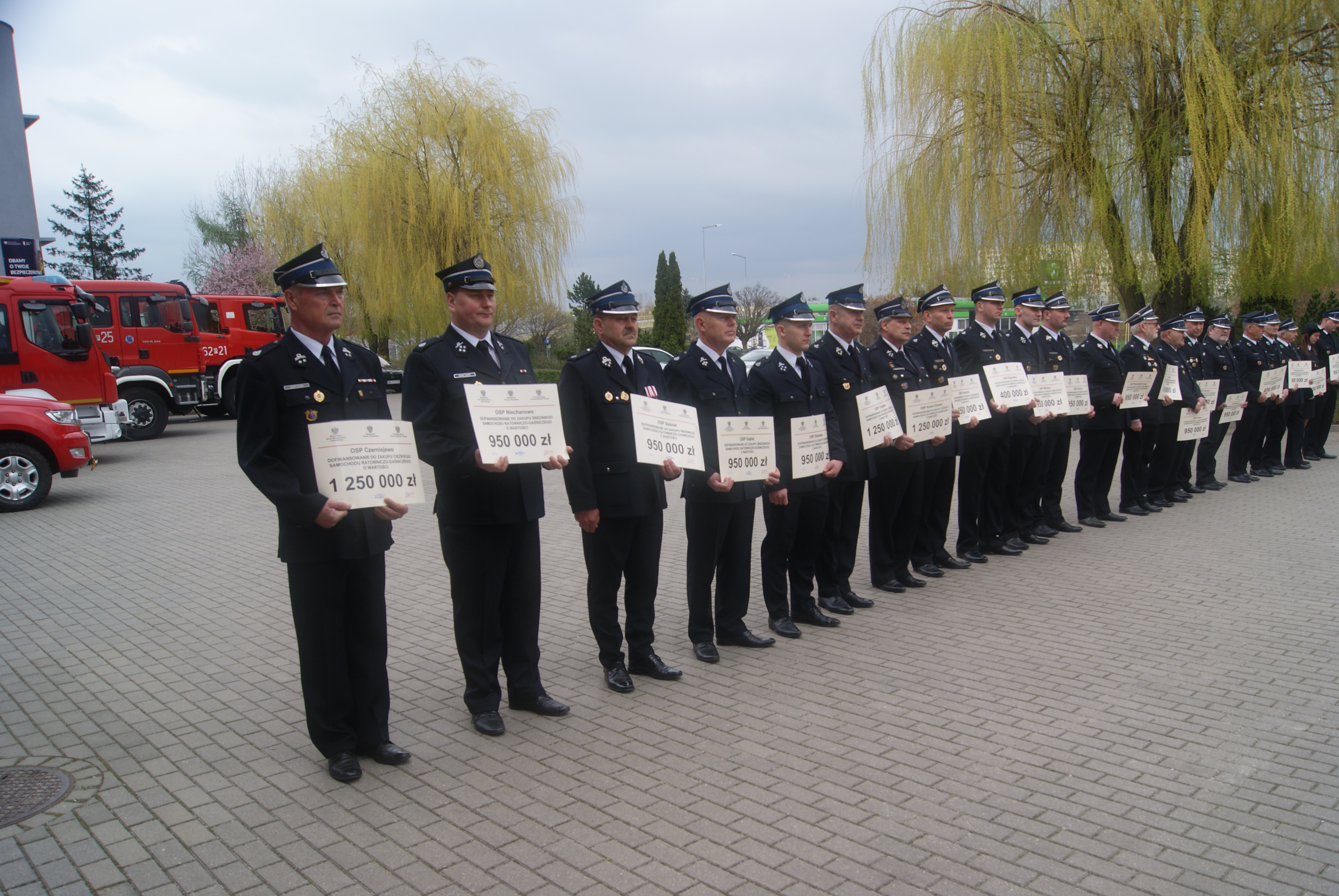 Przekazane promesy dla jednostek OSP zapewniają dofinansowanie na zakup samochodów ratowniczo – gaśniczych ze środków Ministerstwa Spraw Wewnętrznych i Administracji, Ministerstwa Klimatu i Środowiska oraz Komendy Głównej Państwowej Straży Pożarnej.