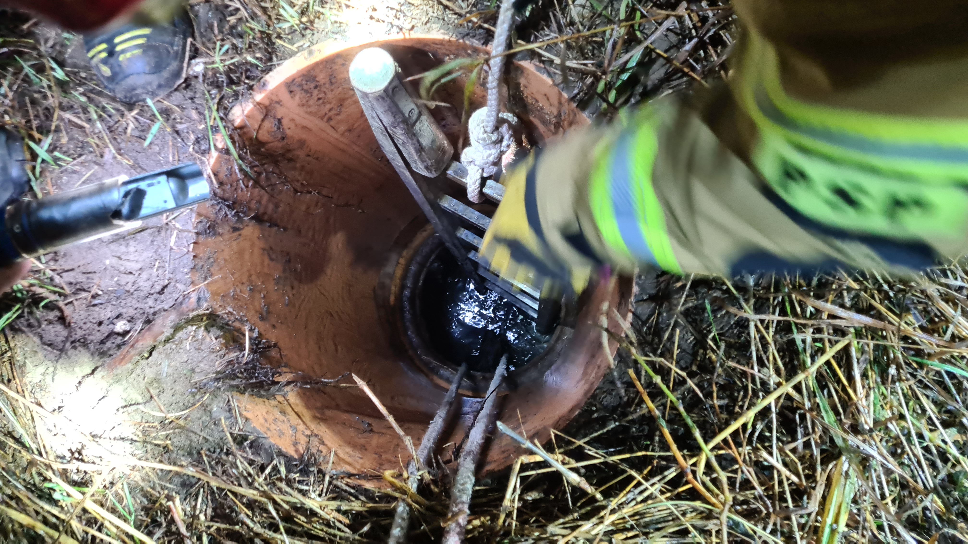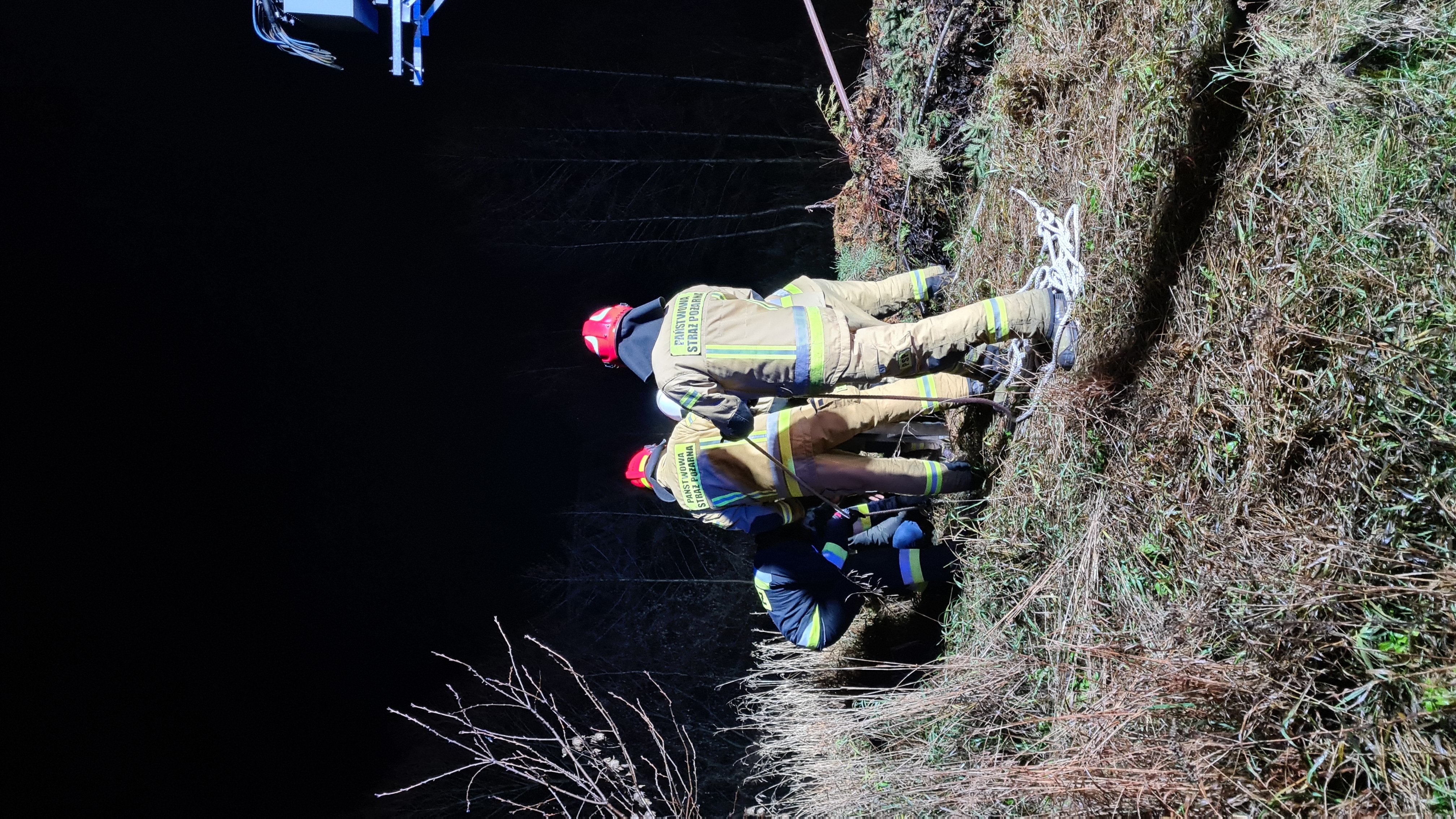 Strażacy przy pomocy linki wyciągnęli psa na powierzchnię. Podjęte czynności pozwoliły na skuteczne wydobycie psa i przekazaniu go właścicielce.