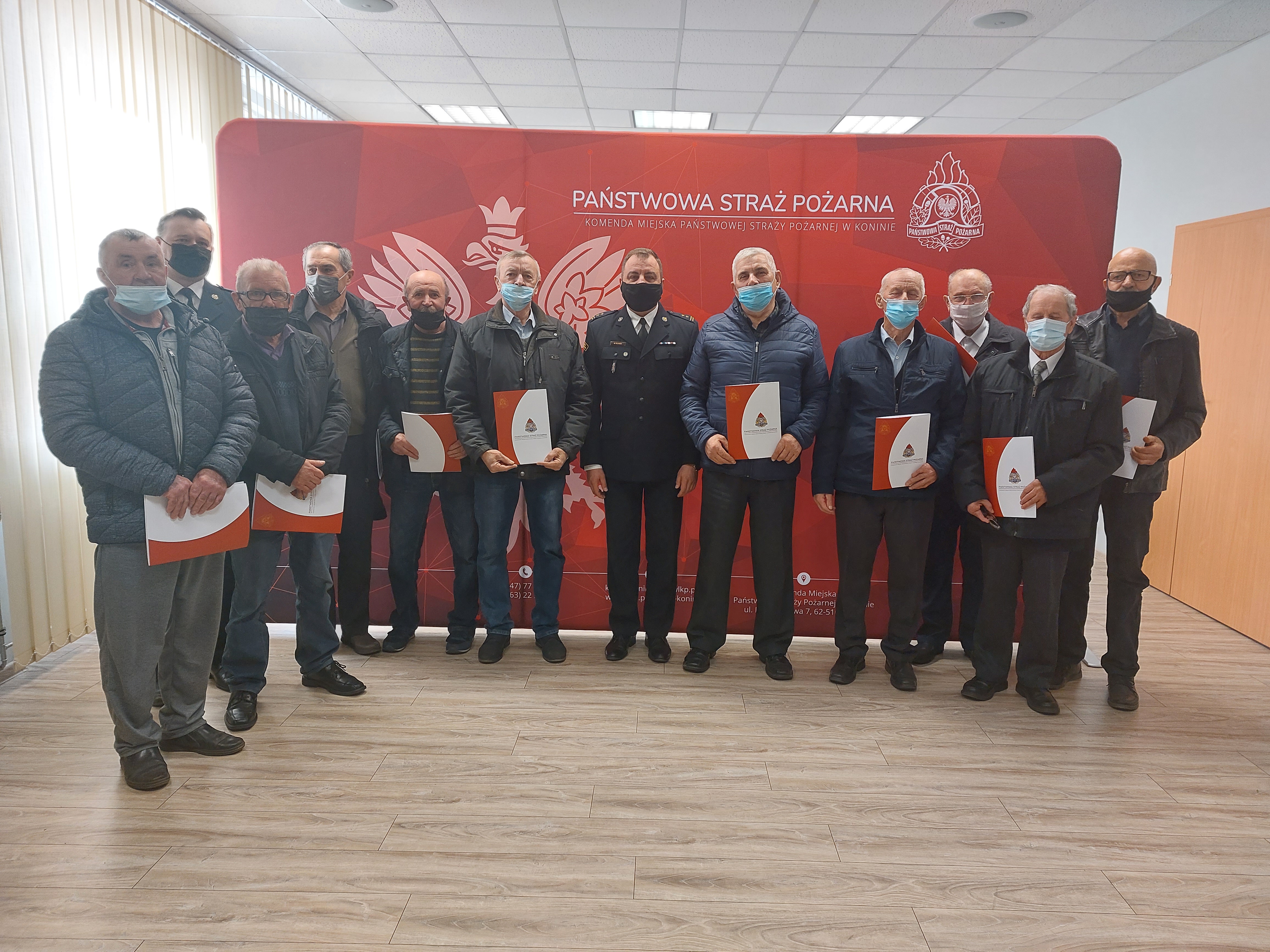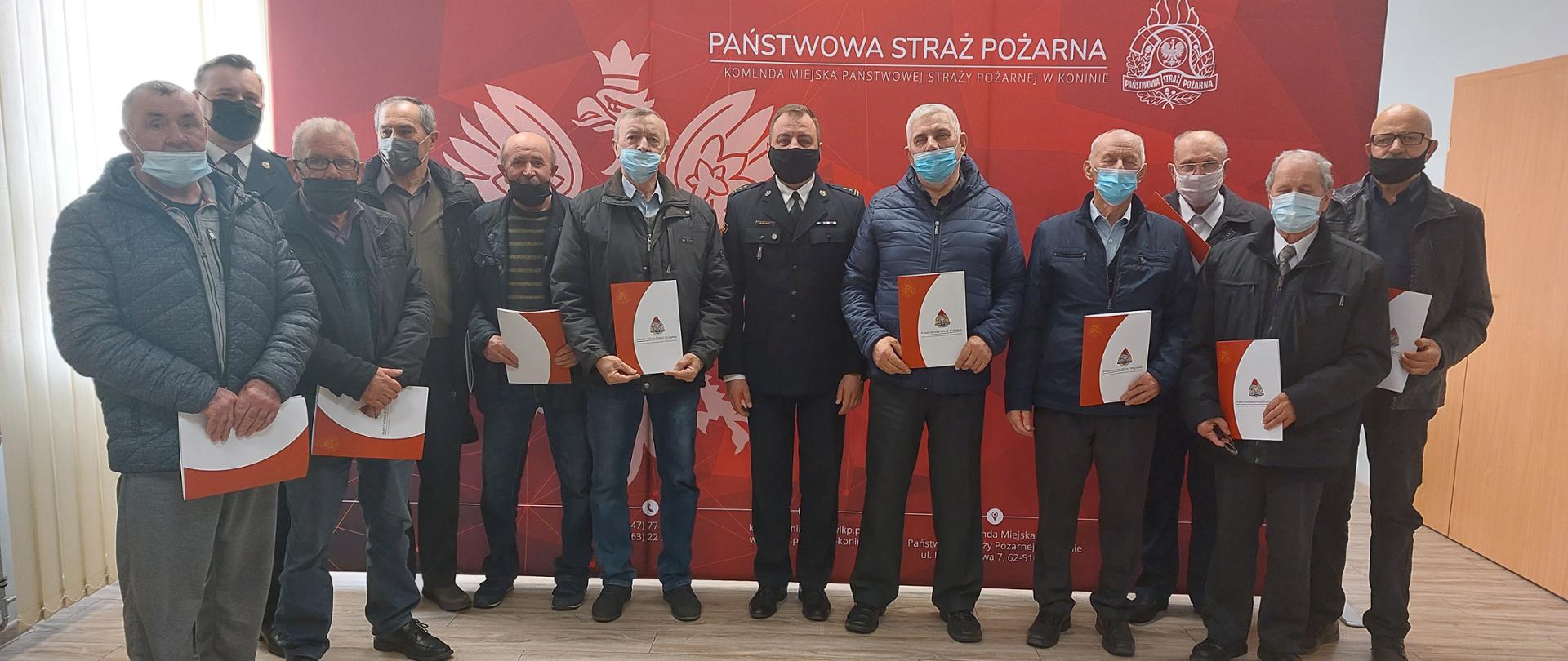 18 marca 2022 r. w siedzibie Komendy Miejskiej Państwowej Straży Pożarnej w Koninie odbyło się uroczyste wręczenie decyzji o przyznaniu świadczenia ratowniczego dla druhów Ochotniczych Straży Pożarnych z terenu powiatu konińskiego.