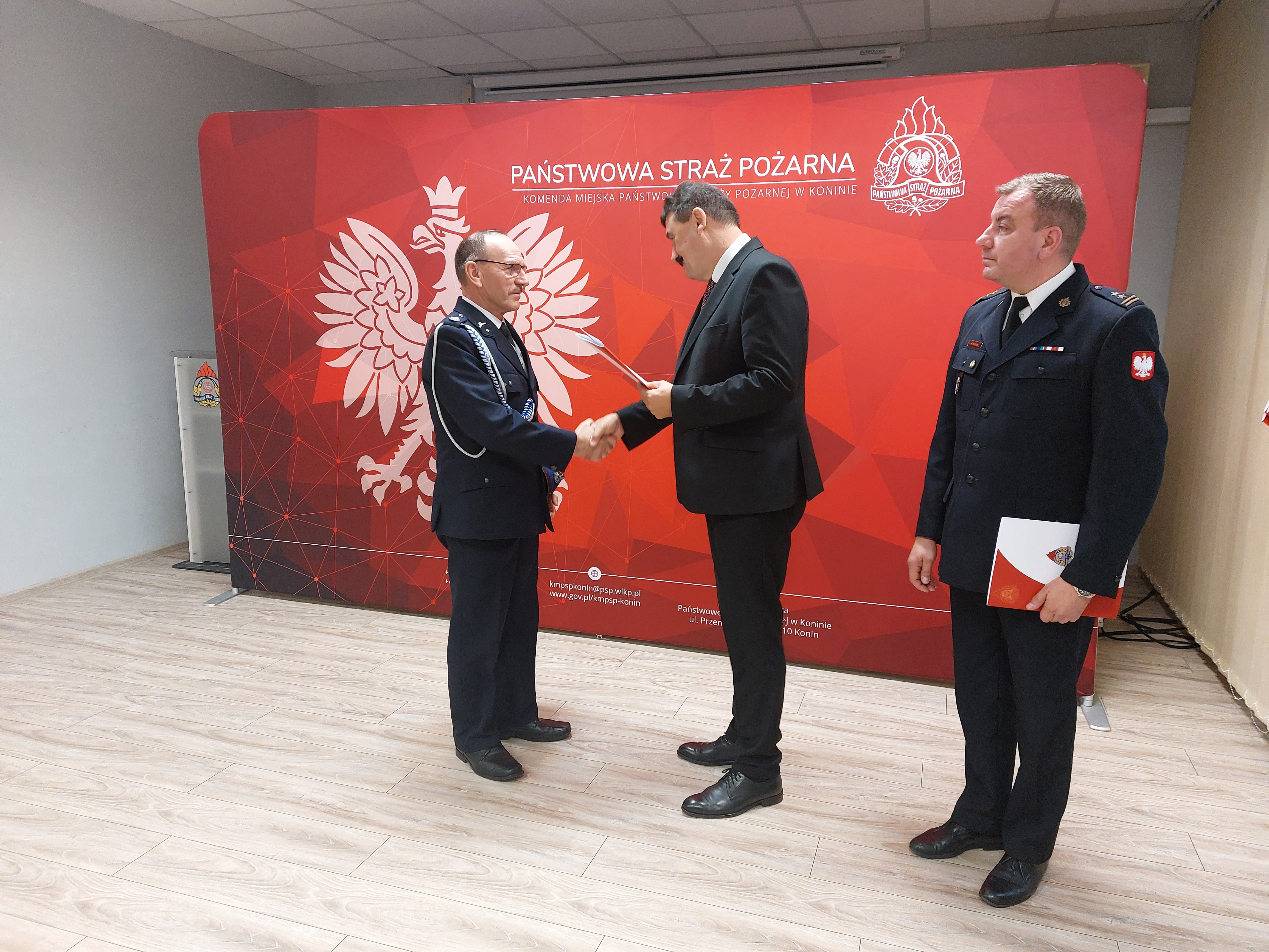 Wręczenia decyzji dokonał osobiście Sekretarz Stanu w Ministerstwie Rolnictwa i Rozwoju Wsi Ryszard Bartosik, komendant miejski PSP w Koninie bryg. Maciej Pilarski wraz z zastępcą bryg. Sebastianem Fabiszakiem.