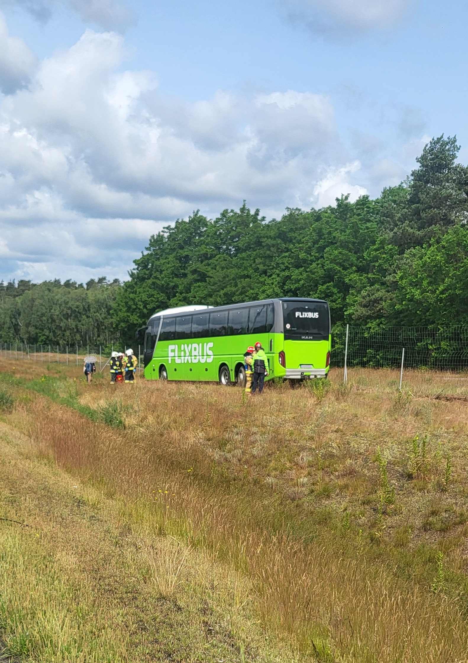 Po przybyciu na miejsce zdarzenia stwierdzono, że na poboczu Autostrady A2 stoi autokar. Pasażerowie oraz kierowcy znajdowali się na zewnątrz pojazdu.