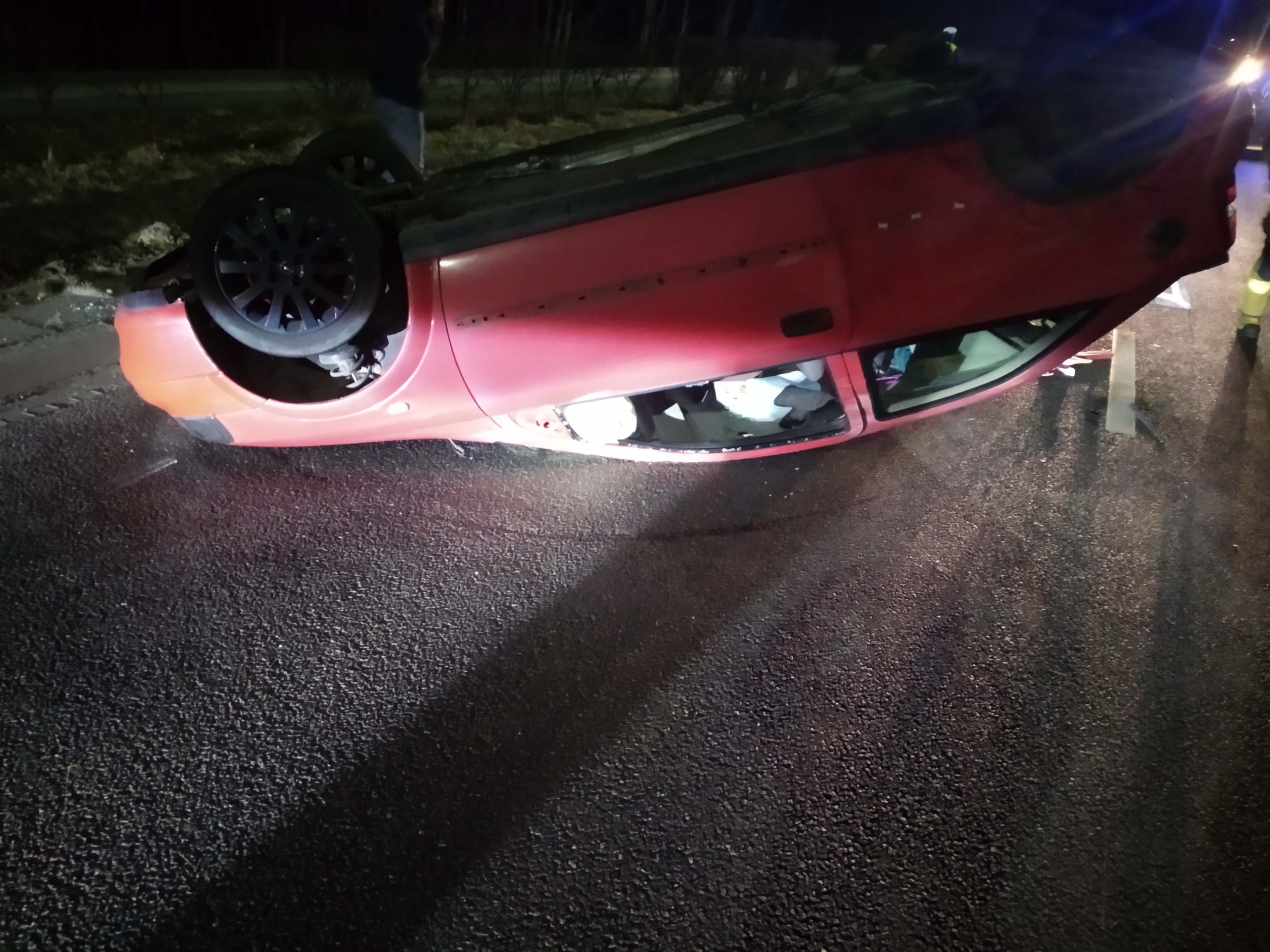Po przybyciu na miejsce ustalono, że na pasie drogi w kierunku Kalisza doszło do zderzenia dwóch samochodów osobowych, w wyniku czego jeden z nich dachował. Osoby podróżujące znajdowały się poza pojazdami. W wyniku wypadku poszkodowana została pasażerka Opla.