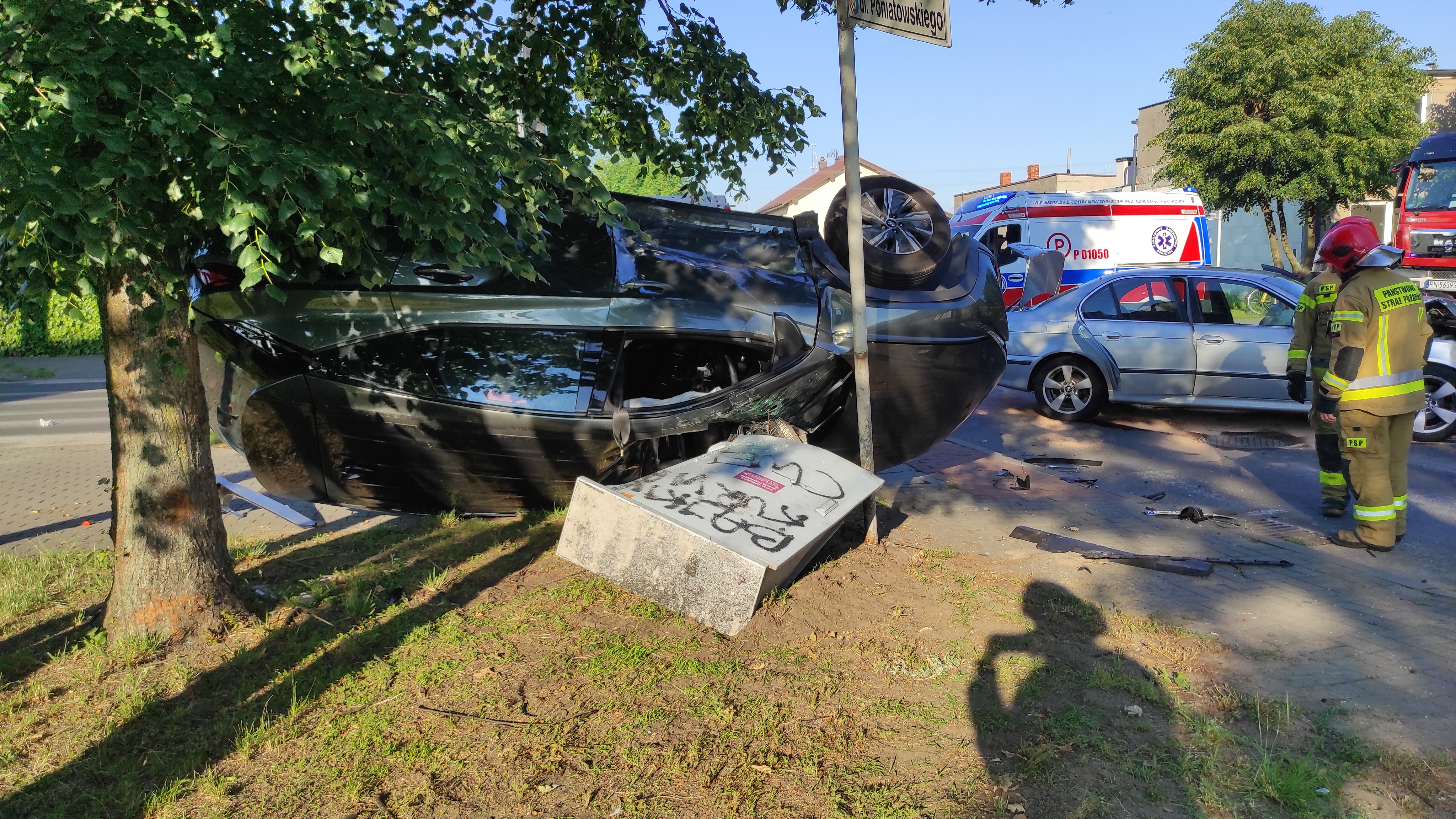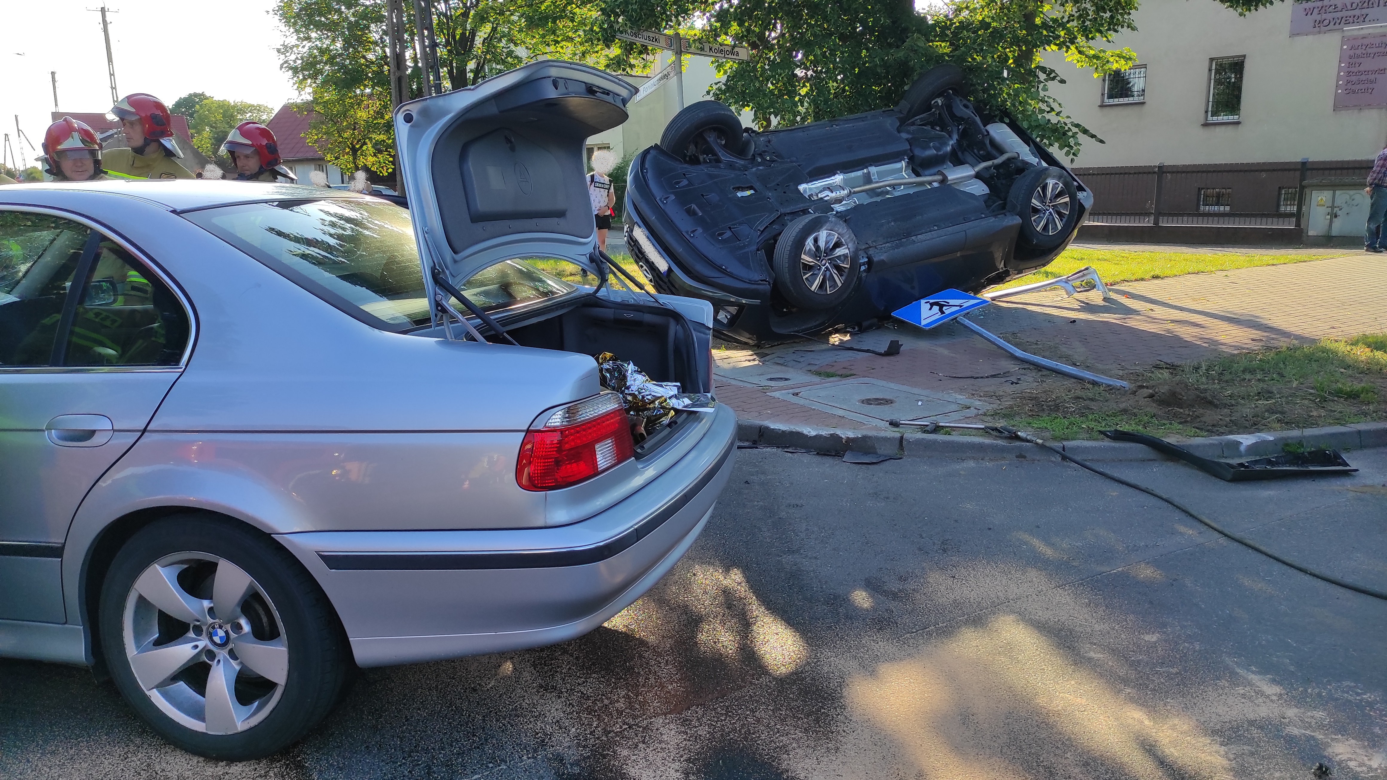 Po przybyciu na miejsce ustalono, że doszło do zderzenia dwóch samochodów osobowych. Samochodem marki BMW podróżowały trzy osoby, natomiast pojazdem Hyundai dwie osoby. Wszyscy uczestniczy wypadu opuścili pojazdy przed przybyciem strażaków. Hyundai znajdował się na dachu poza chodnikiem, natomiast BMW na środku skrzyżowania.