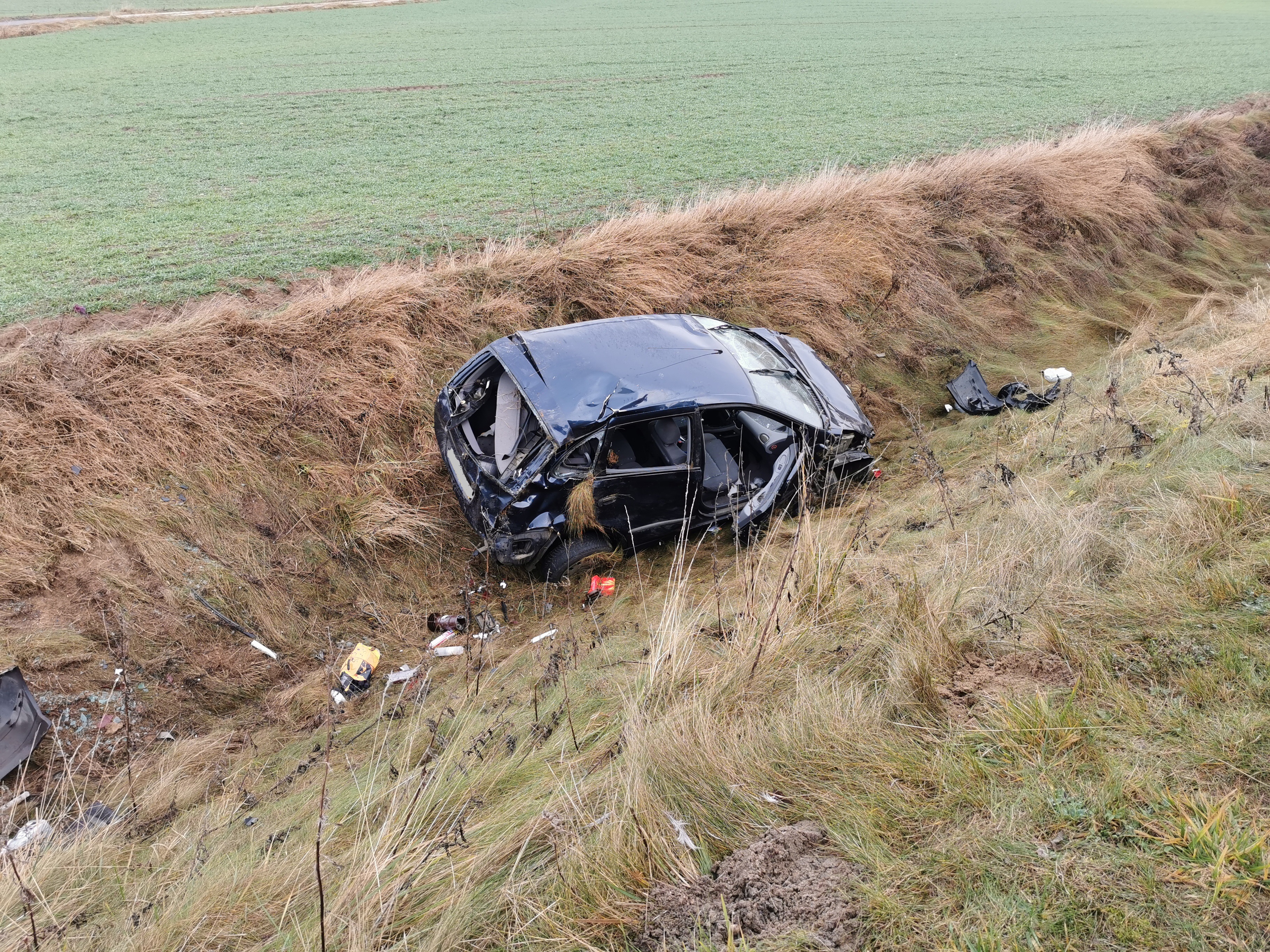 Po przybyciu na miejsce zdarzenia stwierdzono samochód osobowy w przydrożnym rowie, którym podróżowały dwie kobiety. Pasażerka znajdowała się wewnątrz pojazdu, natomiast kierująca opuściła samochód przed przybyciem strażaków.