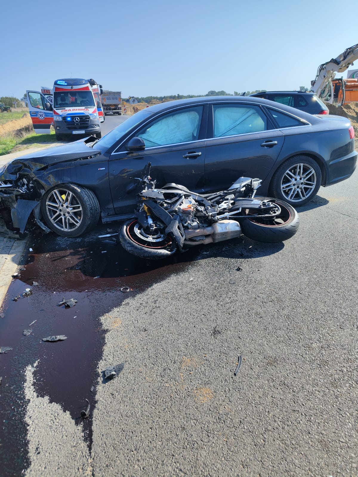Po przybyciu na miejsce ustalono, że doszło do zderzenia motocykla z samochodem osobowym. Motocyklista leżał na poboczu drogi, natomiast kierowca Audi znajdował się poza pojazdem i nie wymagał udzielenia pomocy.