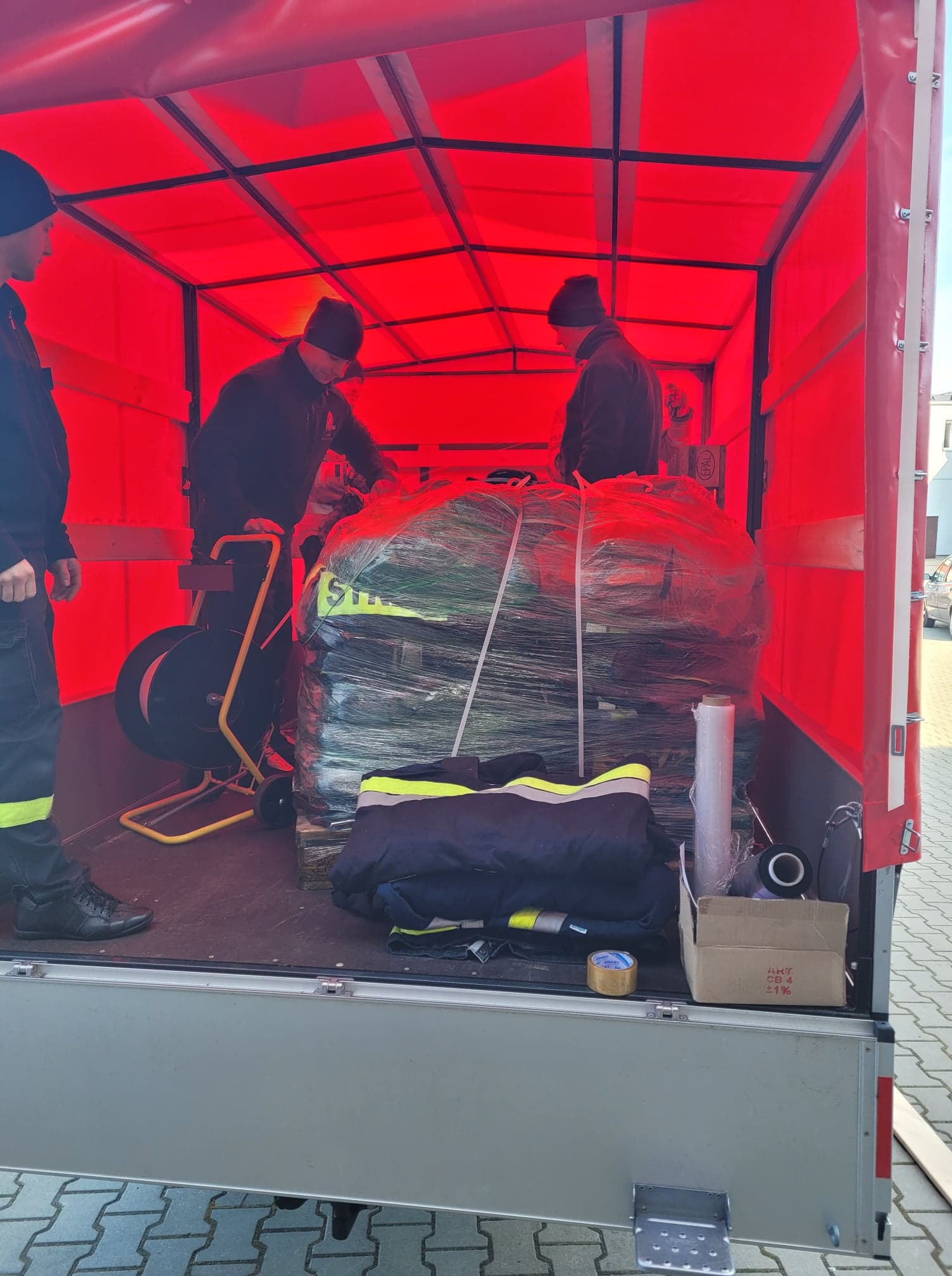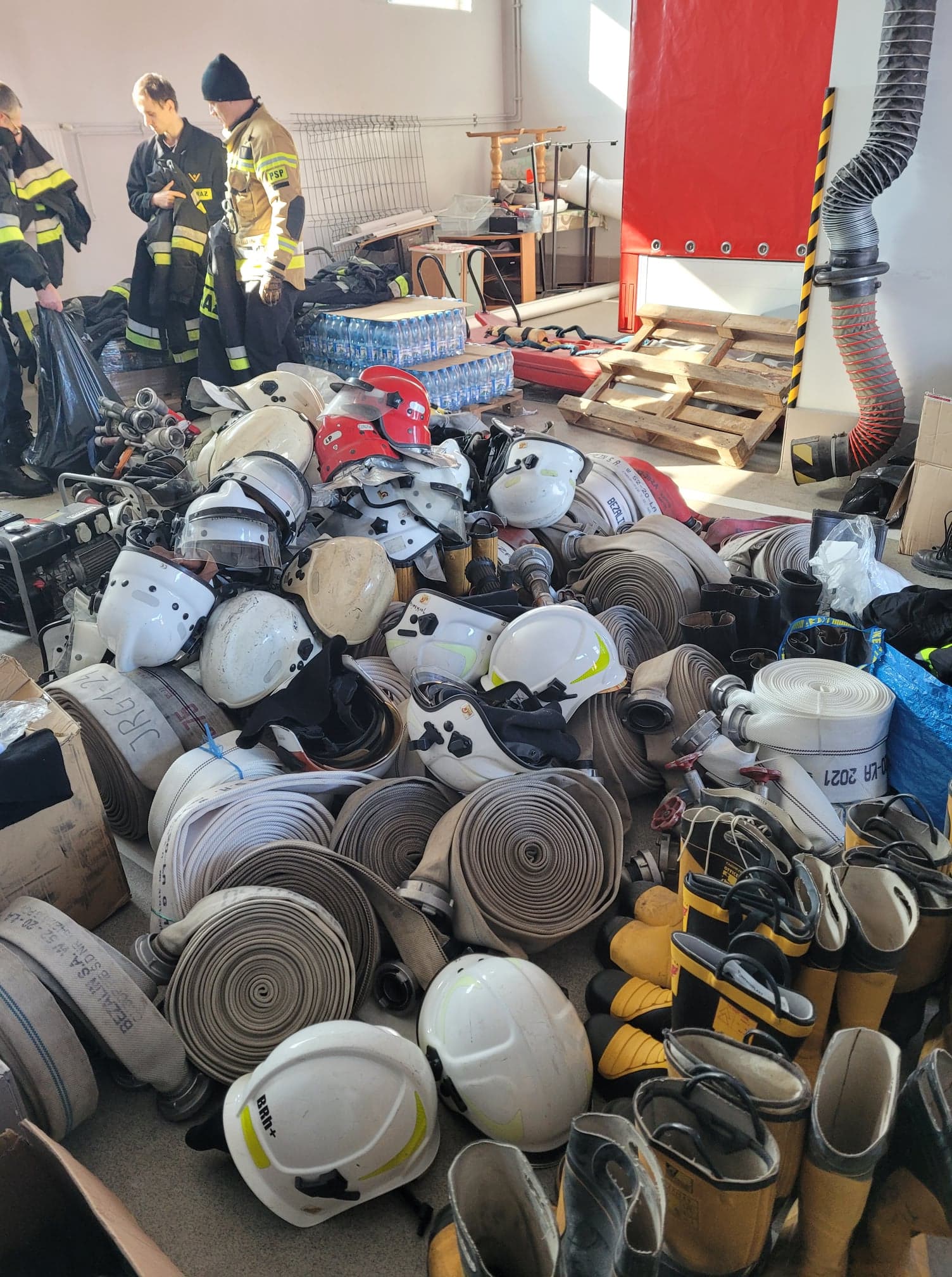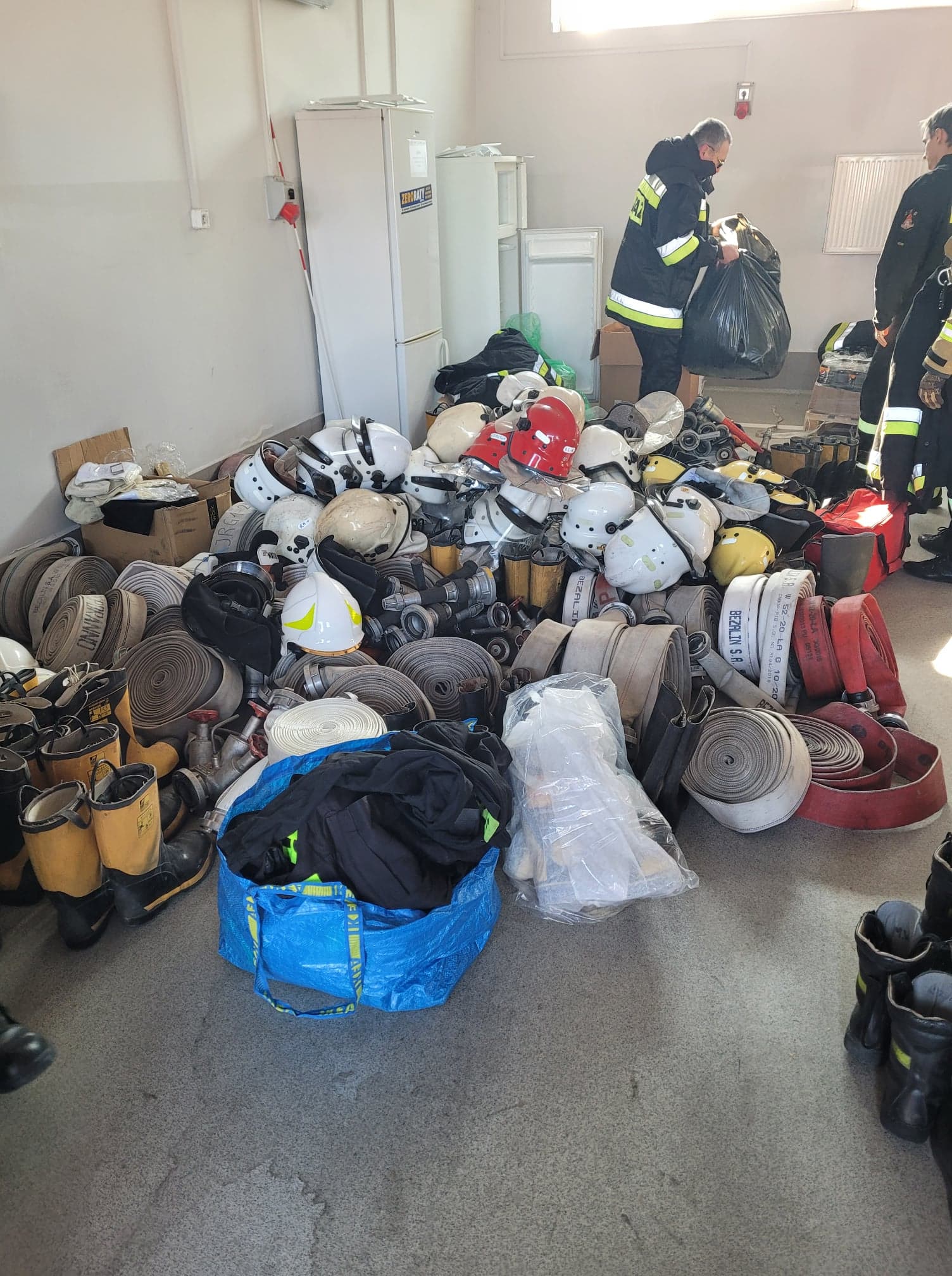 Na tą chwile udało się zebrać bardzo dużą ilość sprzętu m. in.: ok. 100 sztuk odzieży specjalnej typu NOMEX, ok. 60 węży pożarniczych 52 mm i 75 mm, ok. 70 hełmów strażackich, ok. 40 prądownic, ok. 30 par strażackich butów specjalnych oraz torbę medyczną typu PSP R1.