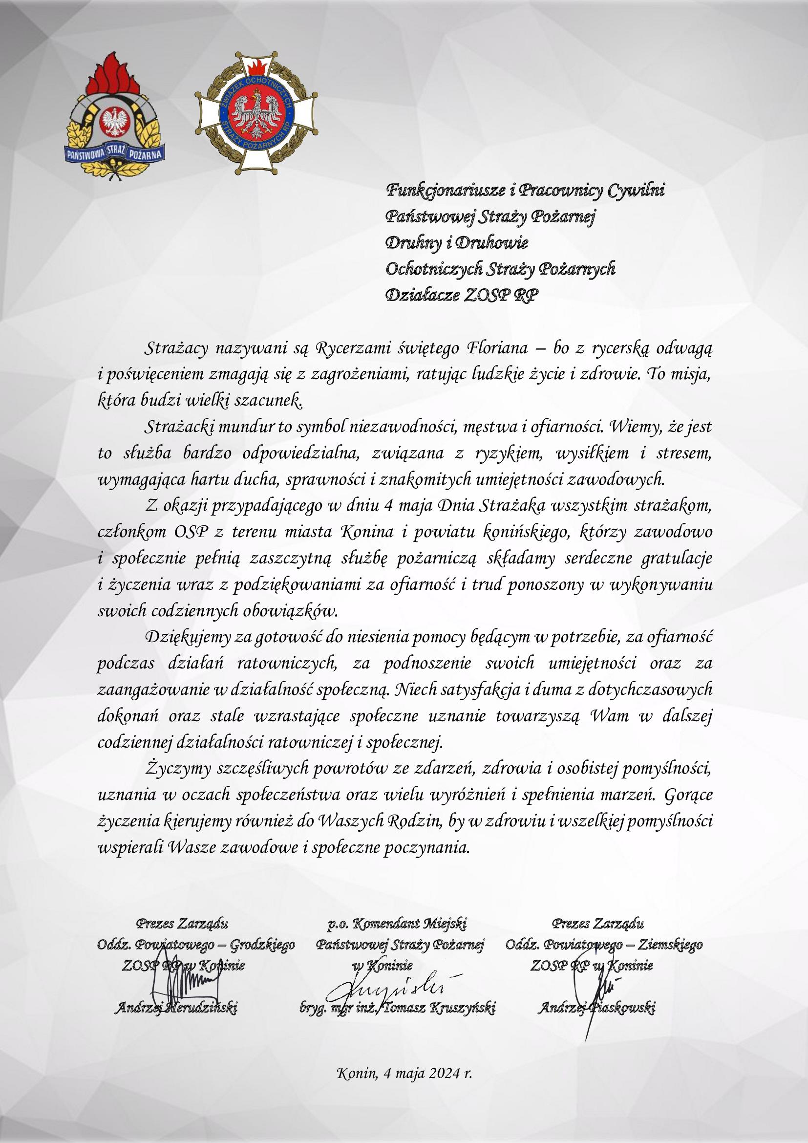 Życzenia z okazji Dnia Strażaka