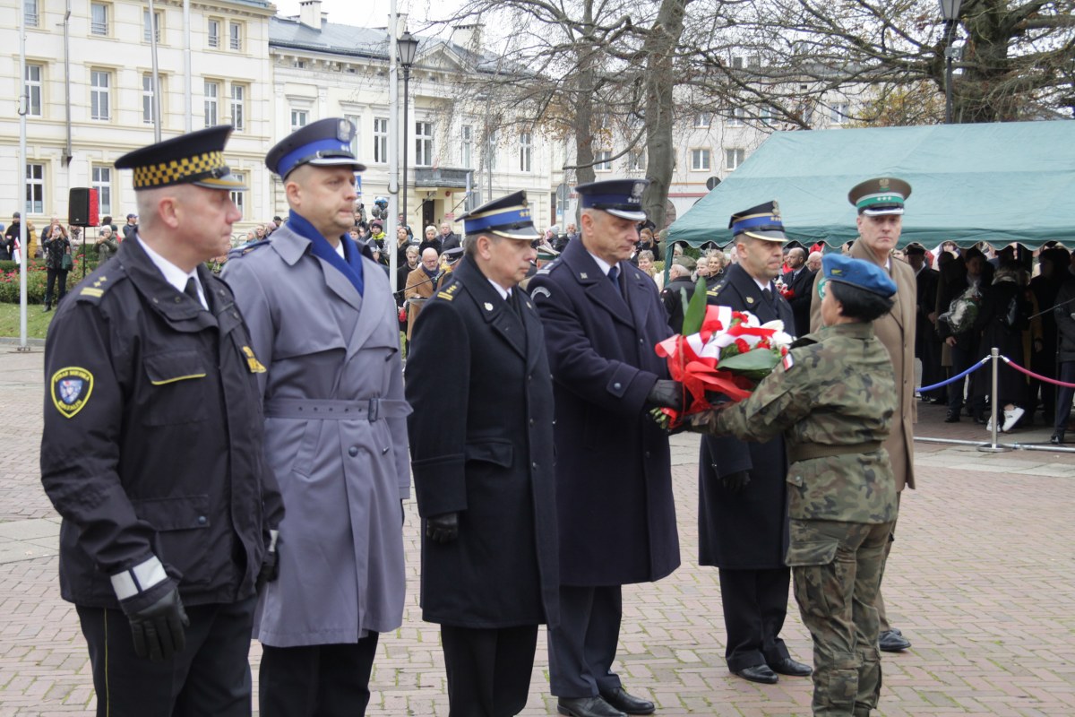 Podczas obchodów komendant miejski PSP w Koszalinie, wspólnie z przedstawicielami innych służb mundurowych, złożył kwiaty pod pomnikiem Marszałka Polski Józefa Piłsudskiego.