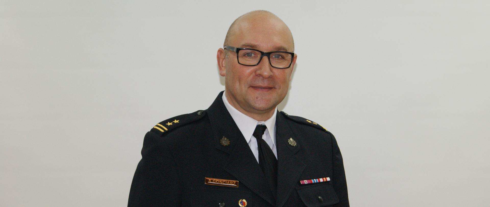 Adam GONCIARZ urodził się 18 grudnia 1967 r. w Szprotawie. Służbę w ochronie przeciwpożarowej rozpoczął 16 września 1996 roku na stanowisku stażysta w Komendzie Rejonowej PSP w Koszalinie, w której zajmował różne stanowiska służbowe w JRG nr 1 i wydziale operacyjno-szkoleniowym. Systematycznie podnosił swoje kwalifikacje kończąc w 1999 roku Szkołę Aspirantów Państwowej Straży Pożarnej w Krakowie. W 2012 roku ukończył studia podyplomowe dla strażaków ubiegających się o zajmowanie stanowisk oficerskich związanych z kierowaniem działaniami ratowniczymi w Szkole Głównej Służby Pożarniczej a następnie w 2013 roku ukończył studia podyplomowe w Wyższej Szkole Zarządzania Personelem w Warszawie w zakresie „Bezpieczeństwo i Higiena Pracy z Elementami Zarządzania”. Z dniem 1 lutego 2019 roku został powołany na stanowisko zastępcy komendanta miejskiego PSP.
