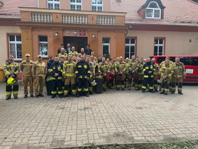 Po zakończoncyh działaniach funkcjonariusze PSP omówili założenie, przedłożyli swoje wnioski i przeprowadzono zapoznanie strażaków z obiektem i pobliskim terenem.