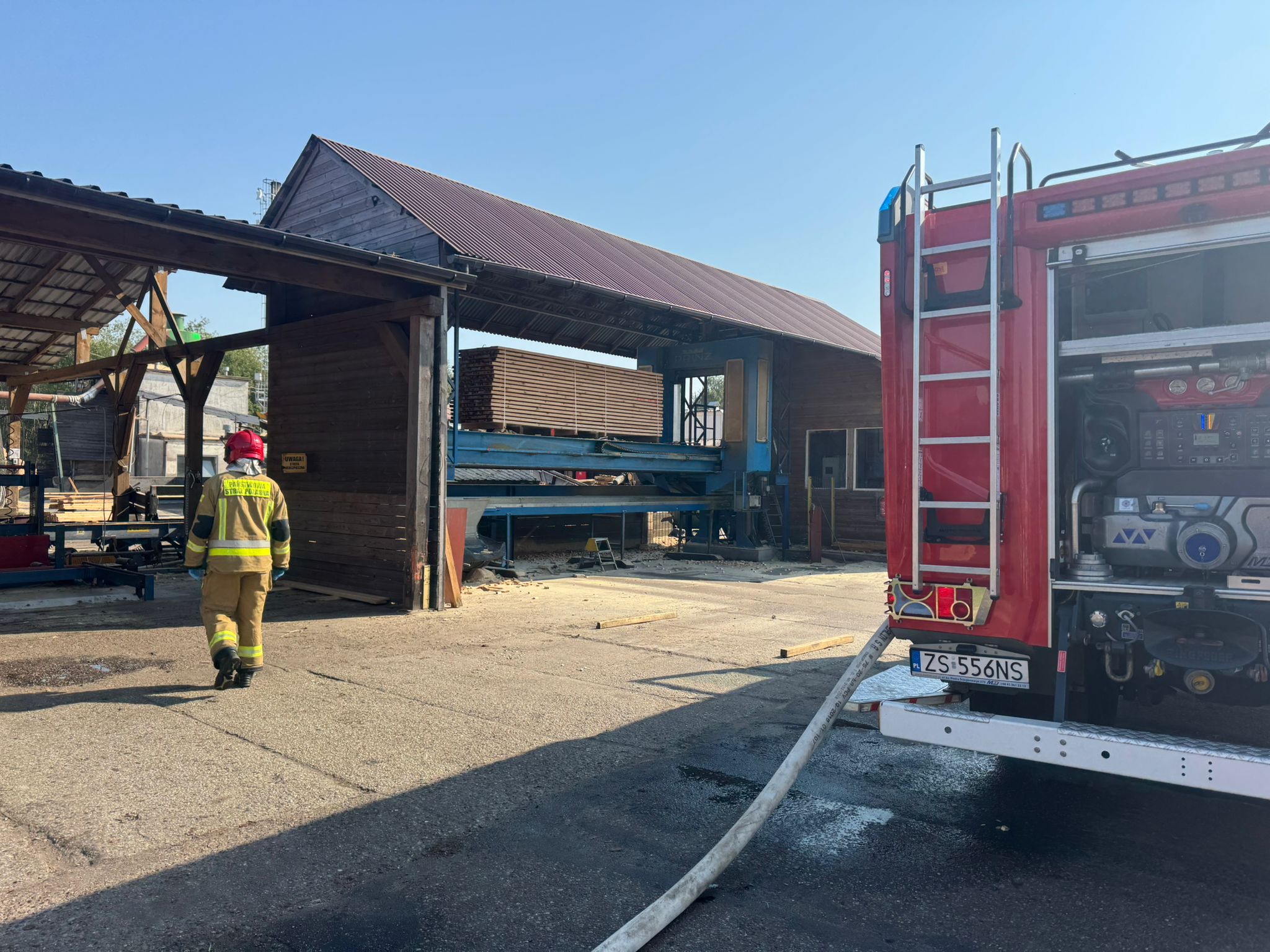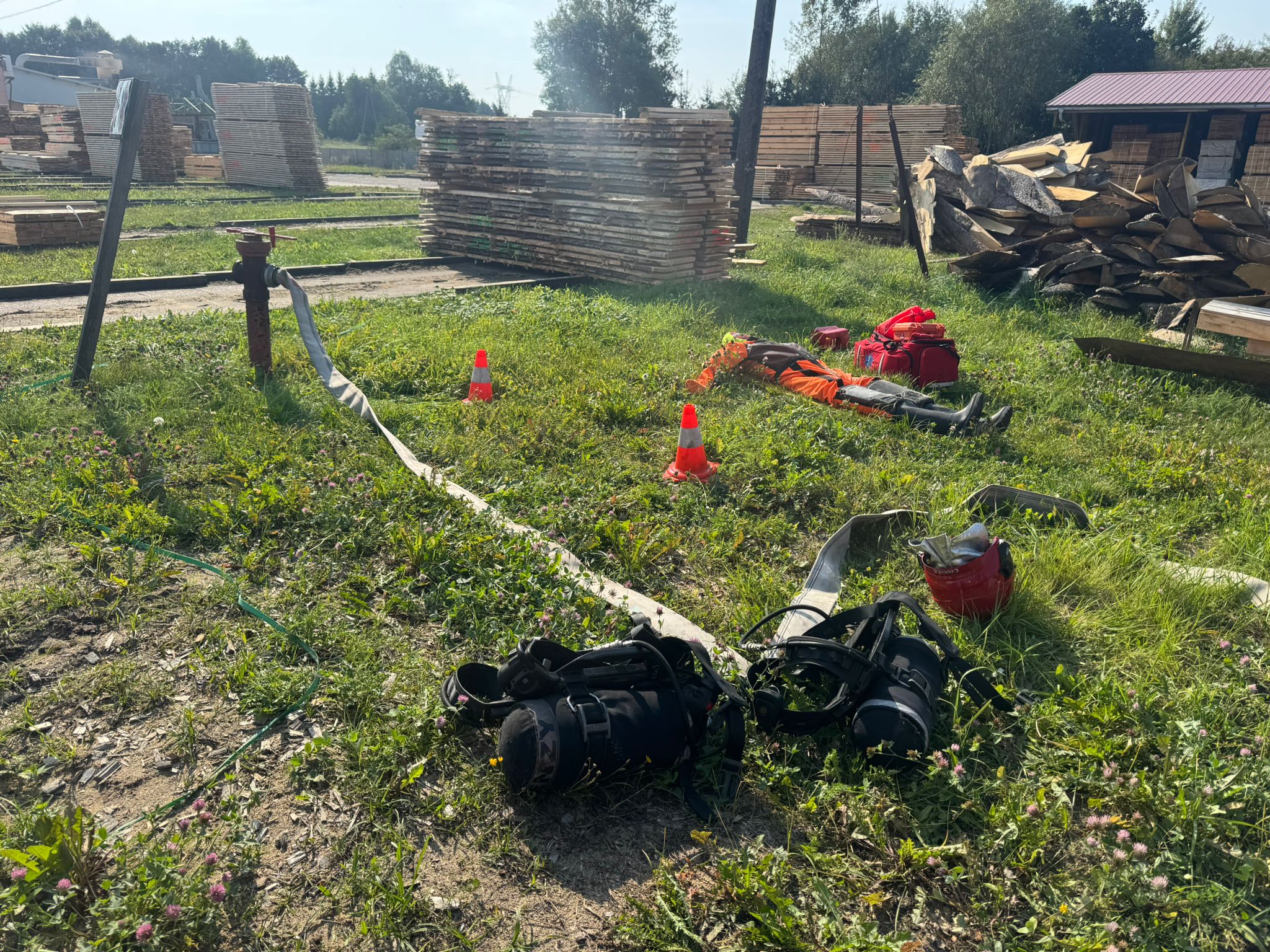 Ćwiczenia pożarowe w tartaku
