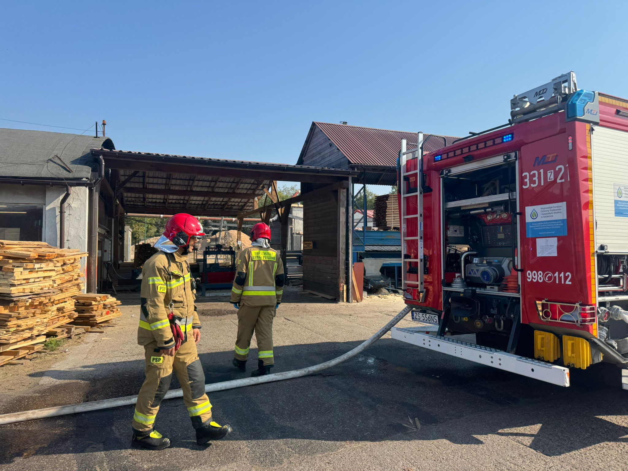 W ćwiczeniach udział brał trzy zastępy z JRG-1 Koszalin oraz pracownicy tartaku.