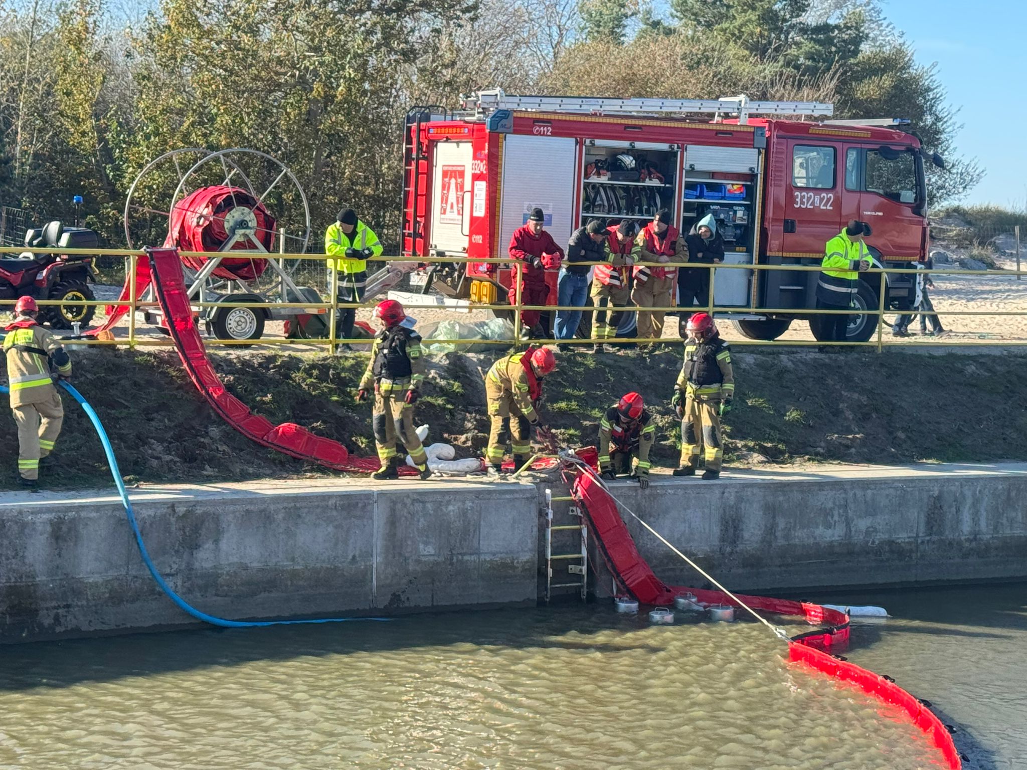 substancji ropopochodnej do wody. Działania ratownicze zgodnie z zasadami i procedurami PSP- takie było założenie do ćwiczeń pk. Kanał Jamneński 2024 w dniu 17.10.2024r.