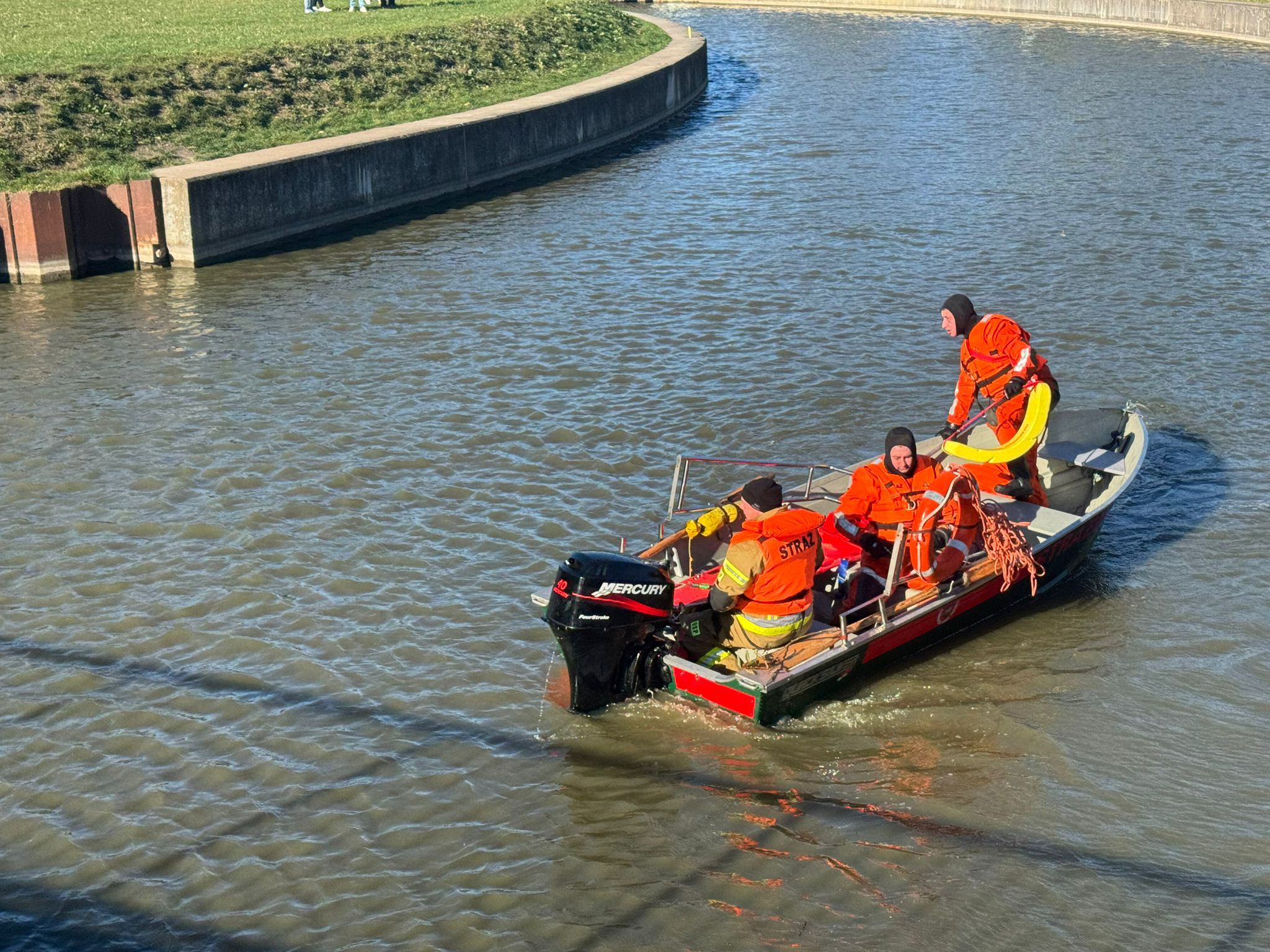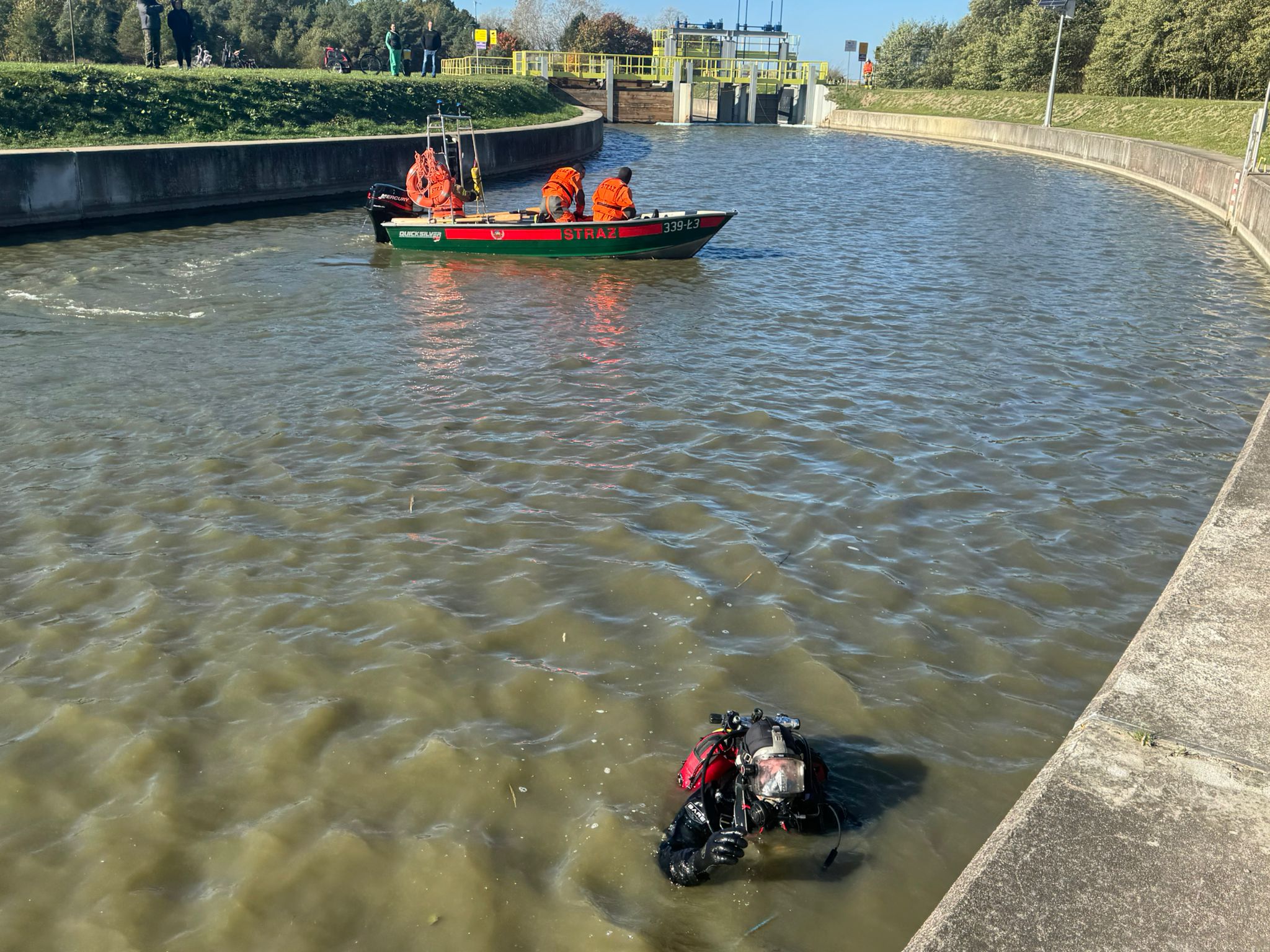 Chwilę przed godziną 10.00 na ul. Generała Stanisława Maczka w Łazach na wysokości kanału Jamneńskiego doszło do zdarzenia drogowego w wyniku, którego auto osobowe wjechało do Kanału Jamneńskiego. Świadkowe zdarzenie zauważyli, że autem podróżowały dwie osoby. Zanim auto zanurzyło się w wodzie nikt nie zdołał opuścić samochodu. W wyniku zdarzenia doszło do wycieku