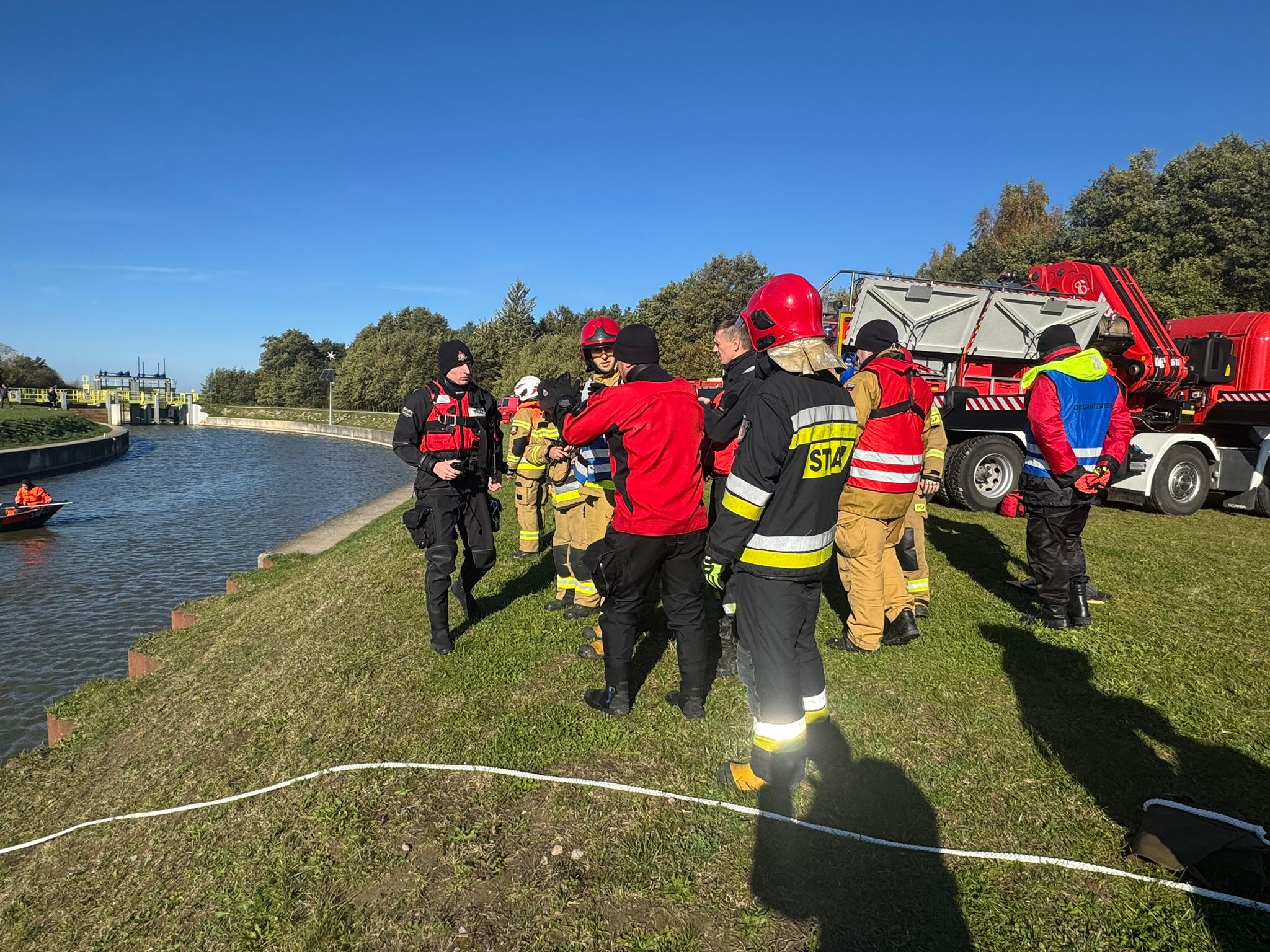 ĆWICZENIA RATOWNICZE W ZAKRESIE TAKTYKI i WSPÓŁDZIAŁANIA SPECJALISTYCZNYCH GRUP RATOWNICTWA W KM PSP KOSZALIN Kanał Jamneński 2024
