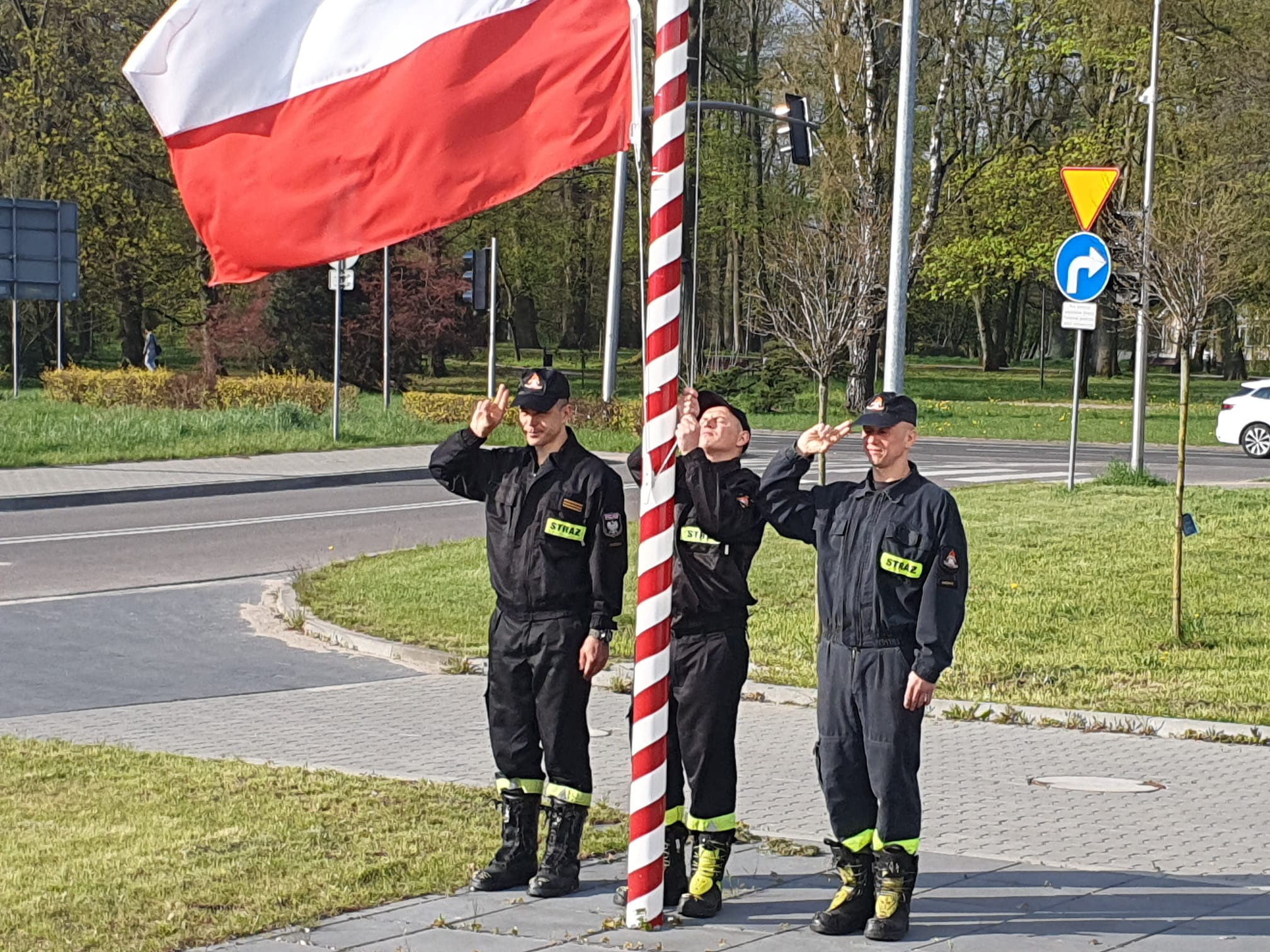W dniu dzisiejszym w związku z Dniem Flagi Rzeczypospolitej odbyła się uroczysta zmiana służby, podczas której dokonano podniesienia flagi na maszt w obu jednostkach ratowniczo-gaśniczych w Koszalinie.