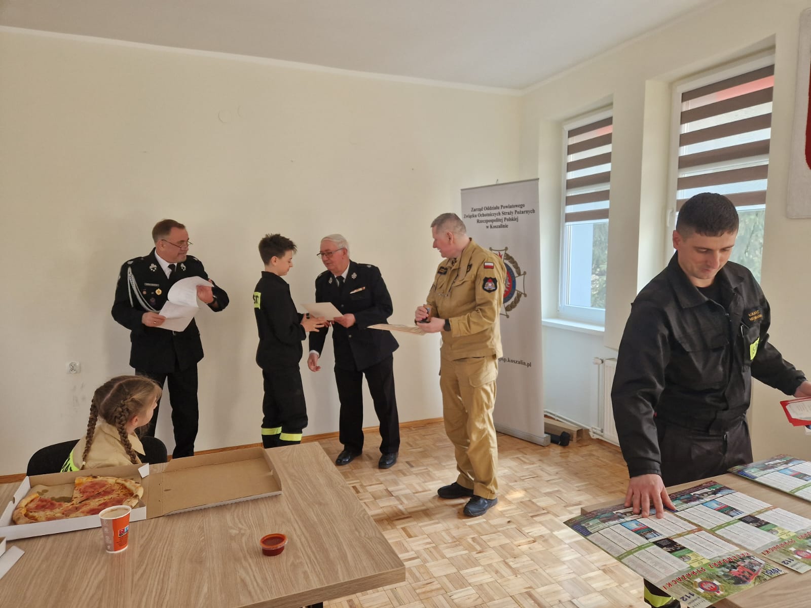 Dnia 29 mara br. w siedzibie Komendy Miejskiej PSP w Koszalinie odbyły się eliminacje powiatowe Ogólnopolskiego Turnieju Wiedzy Pożarniczej „Młodzież Zapobiega Pożarom”. Organizatorem turnieju był Odział Powiatowy Związku OSP RP, fundatorem nagród Starosta Powiatu Koszalińskiego Pan Tomasz Tesmer, a patronat nad konkursem objął Komendant Miejski PSP w Koszalinie bryg. Zygmunt Adamczyk. Konkurs ten ma na celu popularyzowanie przepisów i kształtowanie umiejętności w zakresie ochrony ludności, ekologii, ratownictwa i ochrony przeciwpożarowej wśród dzieci i młodzieży. W konkursie udział wzięli reprezentanci poszczególnych gmin powiatu koszalińskiego z podziałem na 3 kategorie wiekowe. Sam konkurs podzielono na dwa etapy – test i pytania otwarte. Rywalizacja zakończyła się następującymi wynikami: