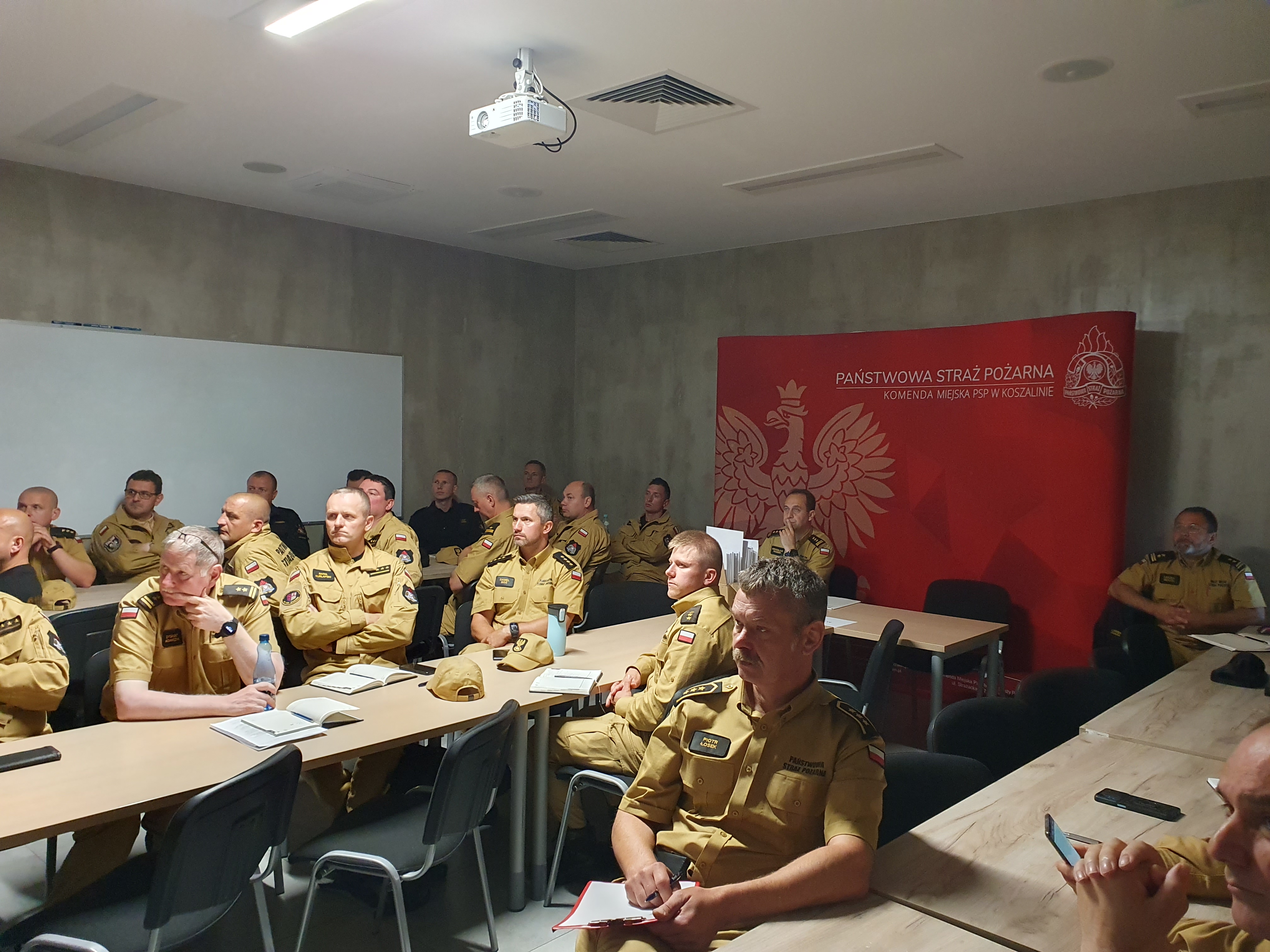 5 lipca 2023 roku w siedzibie Jednostki Ratowniczo-Gaśniczej nr 1 Komendy Miejskiej w Koszalinie odbyła się narada szkoleniowa dla dowódców jednostek ratowniczo-gaśniczych województwa zachodniopomorskiego. Odprawę prowadził Zastępca Komendanta Wojewódzkiego st. bryg. Mirosław Pender. Podczas odprawy przeprowadzone zostało szkolenie, które obejmowało tematykę związaną z ratownictwem wodnym, w tym Zasady Organizacji Ratownictwa Wodnego w KSRG oraz Zasady Organizacji Sekcji Sonarowej. W dalszej części szkolenia poruszono tematykę związaną z zagrożeniami występującymi podczas działań ratowniczo-gaśniczych z pojazdami o napędzie alternatywnym. Po części teoretycznej odbyły się ćwiczenia praktyczne z gaszenia akumulatorów z pojazdów elektrycznych oraz hybrydowych przy użyciu CutLancy będącej na wyposażeniu JRG2 w Koszalinie.