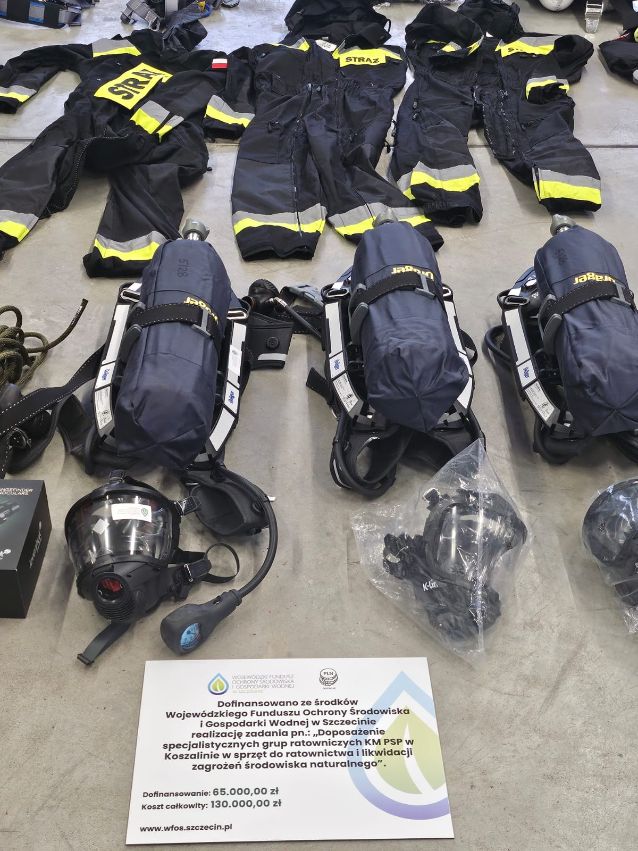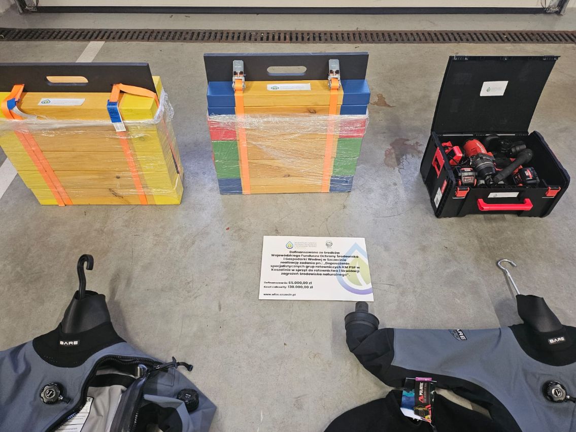 W ramach środków Wojewódzkiego Funduszu Ochrony Środowiska i Gospodarki Wodnej w Szczecinie, który sfinansował to zadanie w 50% oraz wsparciu Komendy Wojewódzkiej PSP w Szczecinie, Komenda Miejska PSP w Koszalinie doposażyła specjalistyczne grupy ratownicze w sprzęt do ratownictwa i likwidacji zagrożeń środowiska naturalnego.