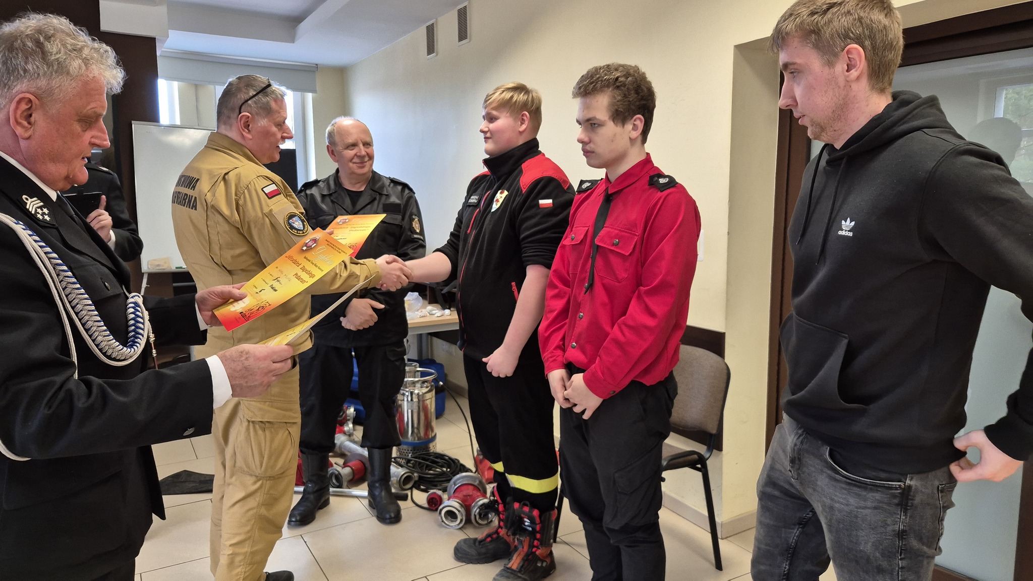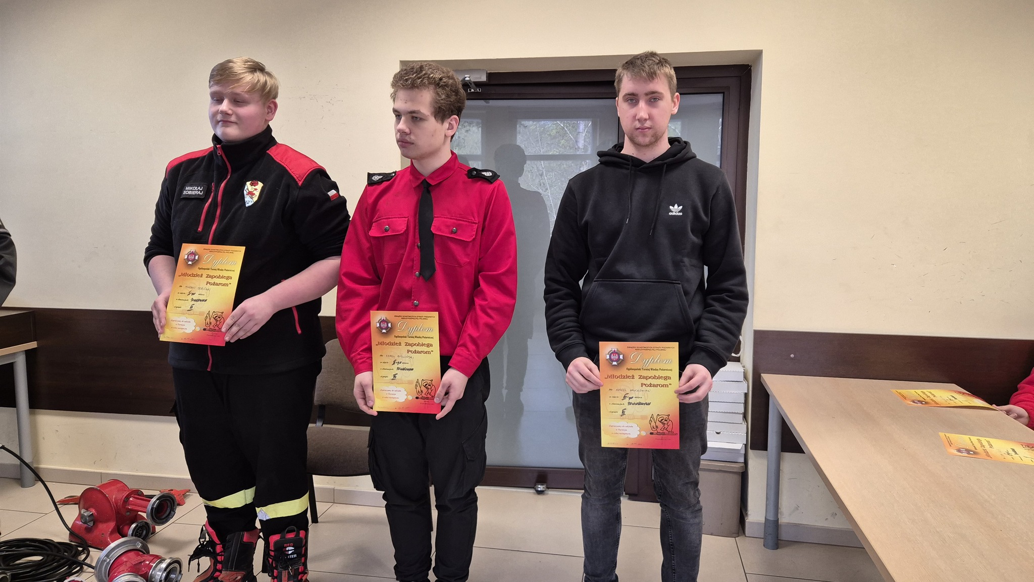 Laureaci otrzymali nagrody z rąk gospodarza konkursu p. o. Komendanta Miejskiego PSP w Koszalinie bryg. Zygmunta Adamczyka oraz Prezesa OP ZOSP dh Romana Budynka.