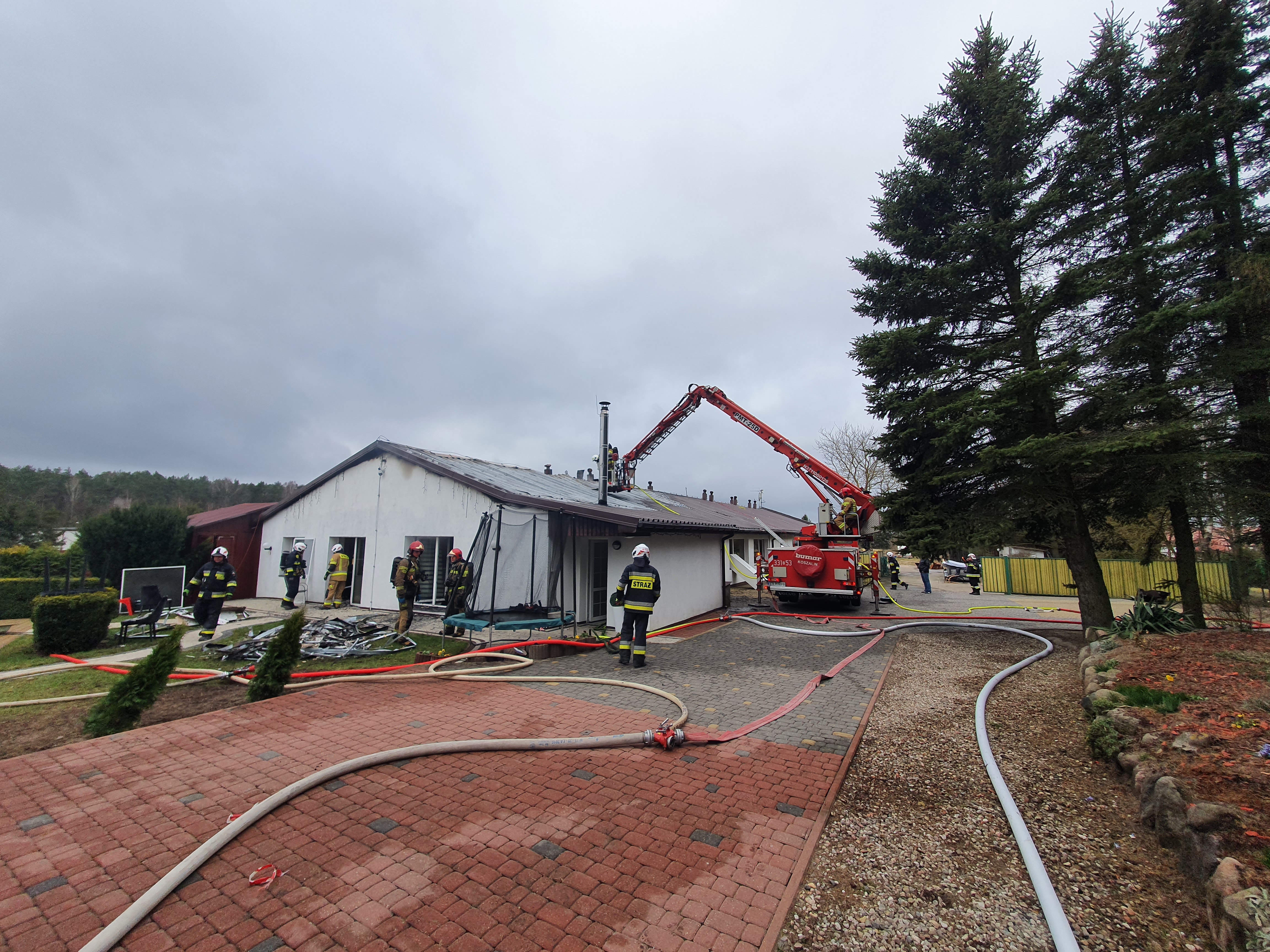 Pożarem objęte było poddasze pokryte blachodachówką wraz z instalacją fotowoltaiczną.