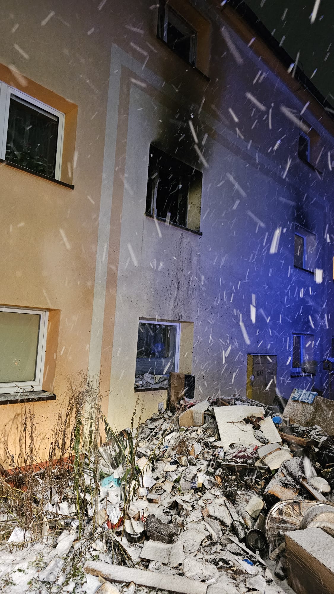Do działań niezwłocznie zadysponowano jednostki ochrony przeciwpożarowej, które po dotarciu na miejsce zdarzenia potwierdziły pożar mieszkania na pierwszym piętrze oraz duże zadymienie na klatce schodowej budynku.