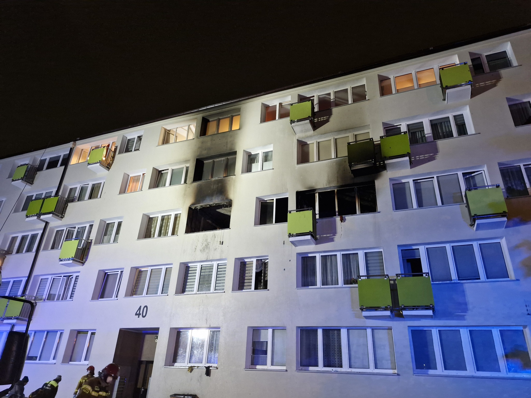 Na miejscu zdarzenia strażacy ustalili, że pożarem całkowicie objęty jest lokal mieszkalny na drugim piętrze w budynku mieszkalnym wielorodzinnym. Ogień oraz dym wydobywał się na zewnątrz mieszkania stwarzając zagrożenie rozprzestrzenienia się na pozostałe lokale mieszkalne.
