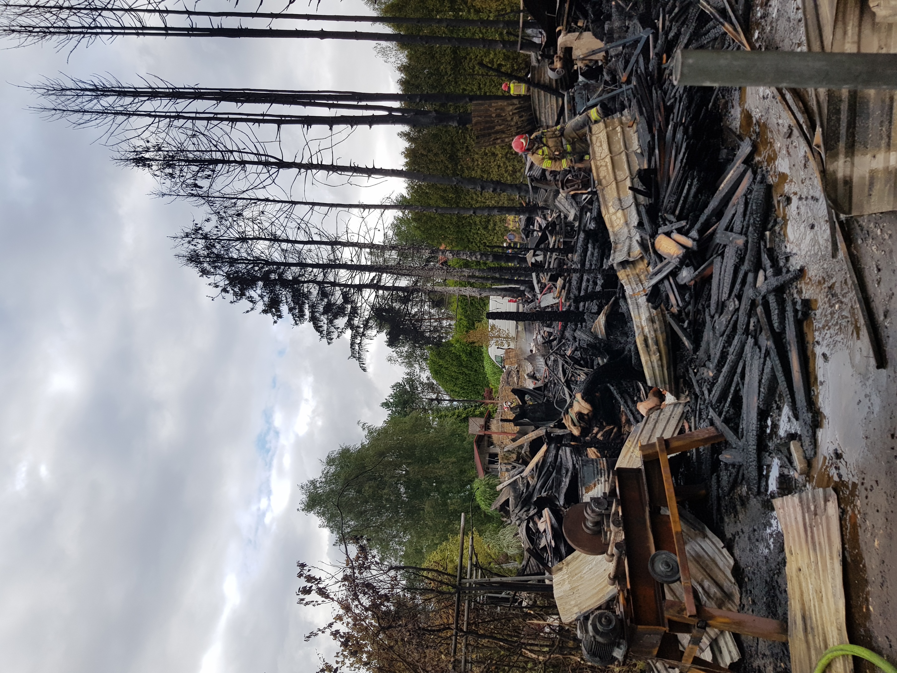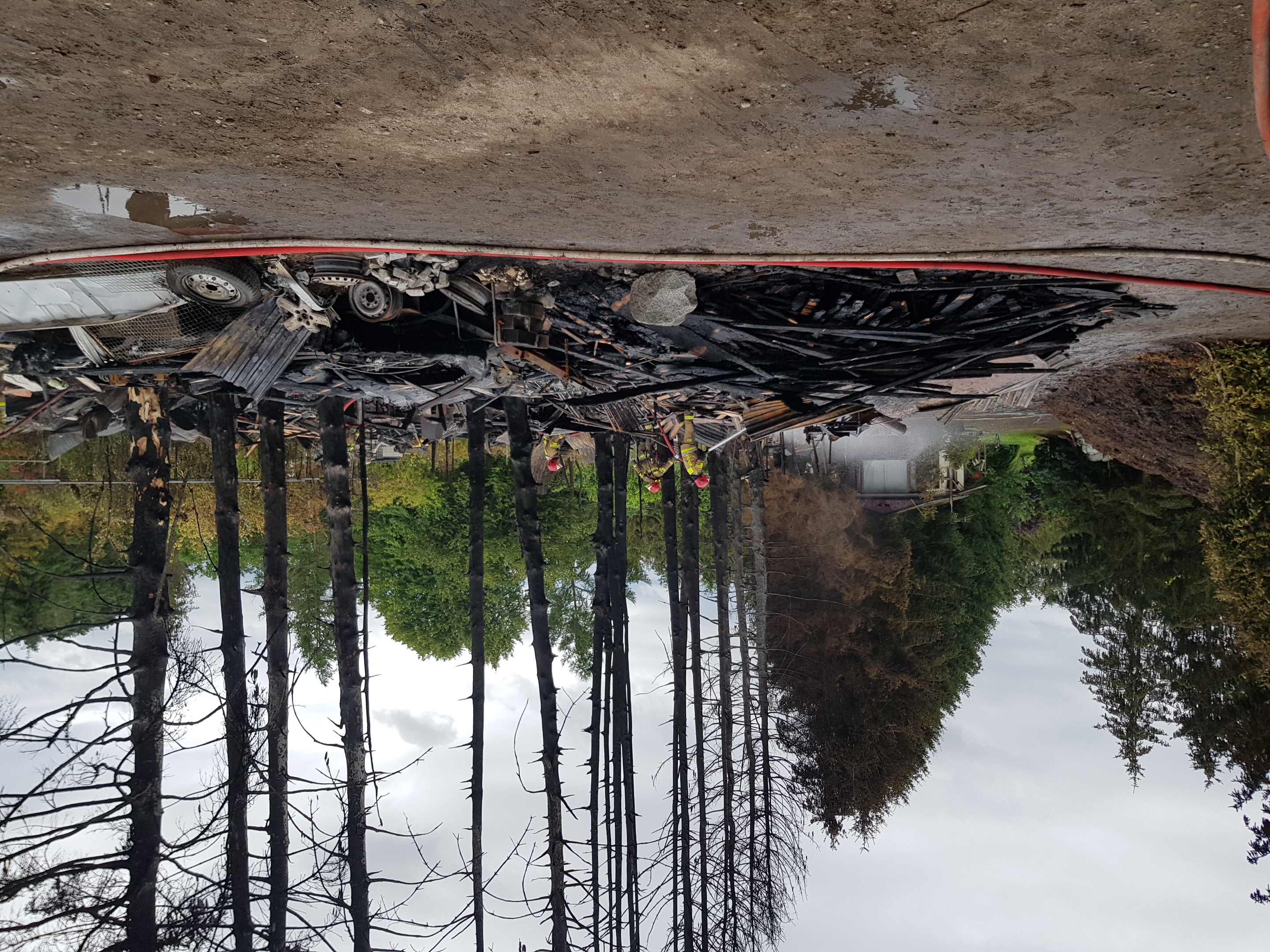 Po dojeździe pierwszych zastępów na miejsce ustalono że ogniem objęta była wiata magazynowa z instalacją fotowoltaiczną, skład drewna, pobliskie drzewa oraz pojazdy mechaniczne.