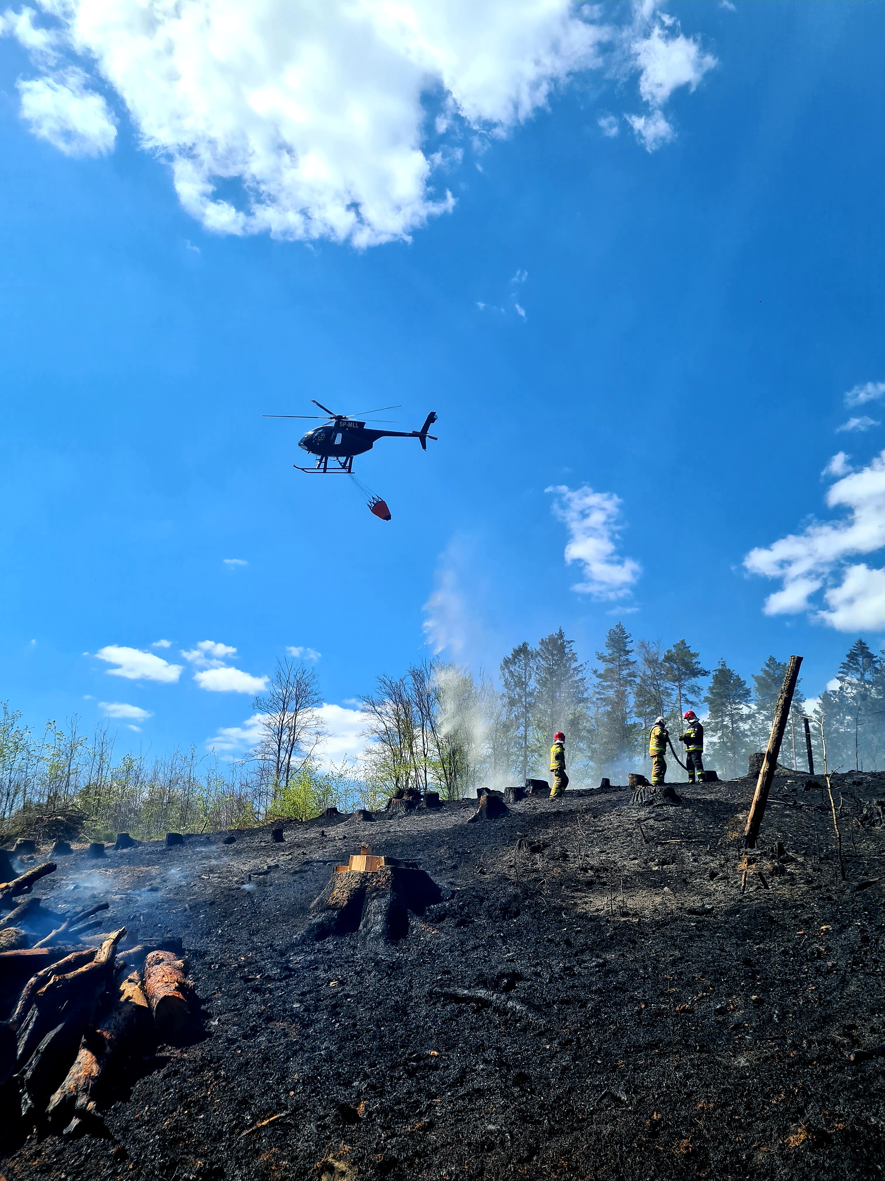 W przypadku dwóch zdarzeń śmigłowiec zadysponowany przez służby nadleśnictwa dodatkowo wykonywał zrzuty wody na palące się lasy.