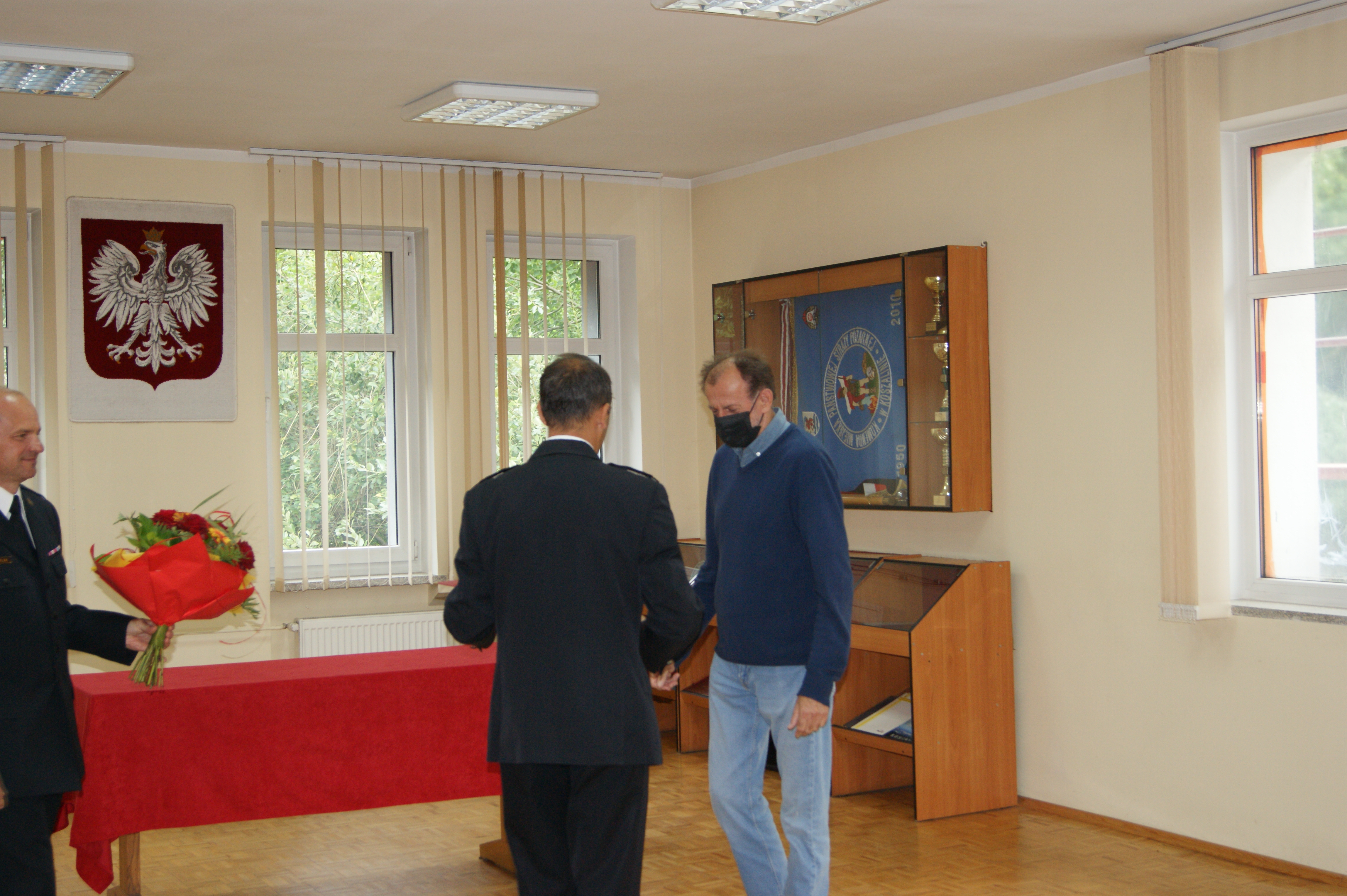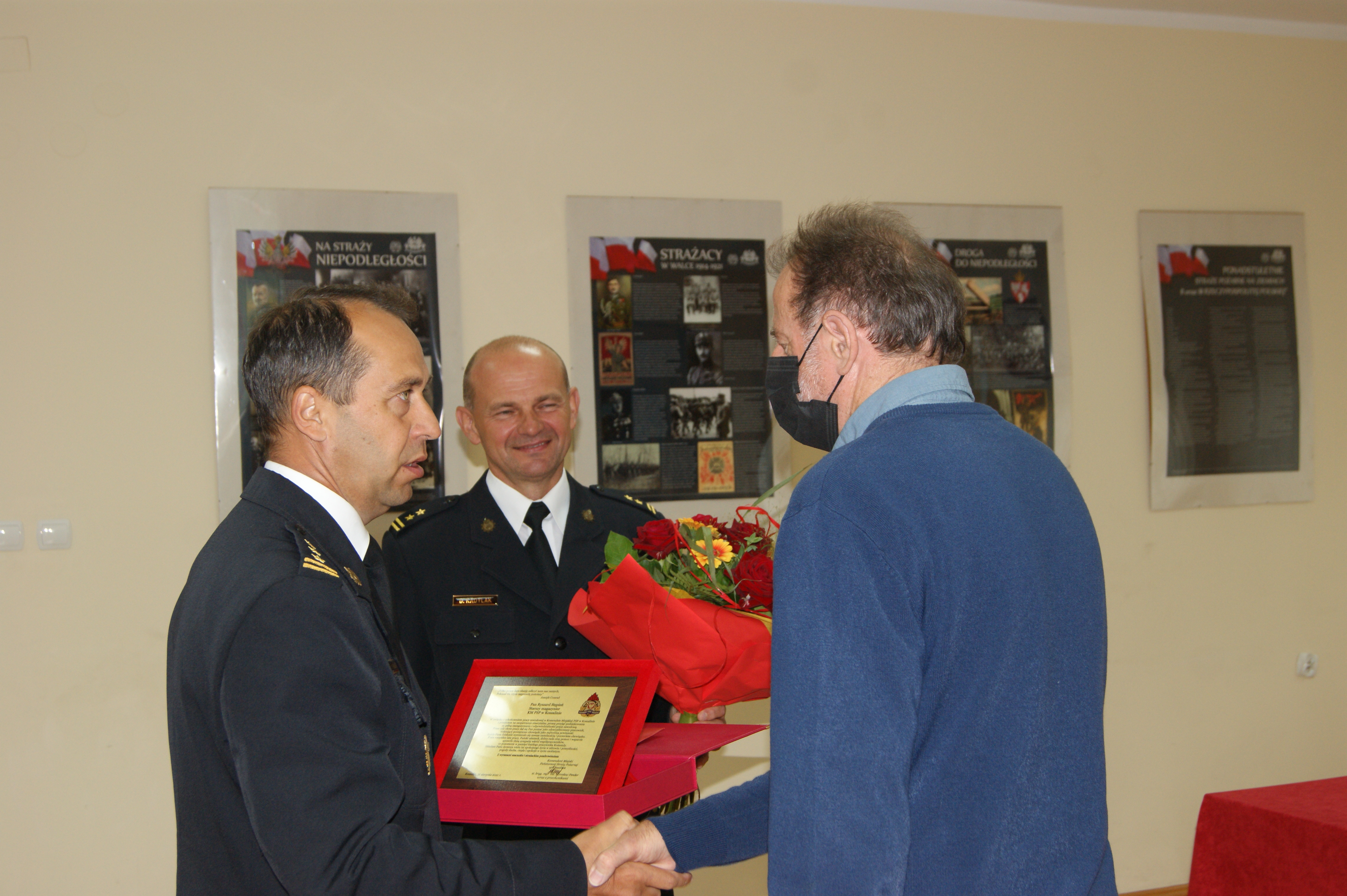 Ze względu na panującą sytuację epidemiologiczną i związanymi z nią obostrzeniami, uroczysta zbiórka odbyła się w ograniczonym gronie. Odchodzącego pracownika żegnał komendant miejski PSP w Koszalinie st. bryg. Mirosław Pender w obecności kadry kierowniczej i pracowników. W trakcie uroczystości wspomniano przebieg pracy zawodowej pracownika, złożono podziękowania za wieloletnią służbę oraz pracę, wręczając okolicznościowe upominki. Komendant miejski PSP w Koszalinie st. bryg. Mirosław Pender podziękował pracownikowi za zaangażowanie podczas wypełniania obowiązków służbowych oraz sumienność i rzetelność.