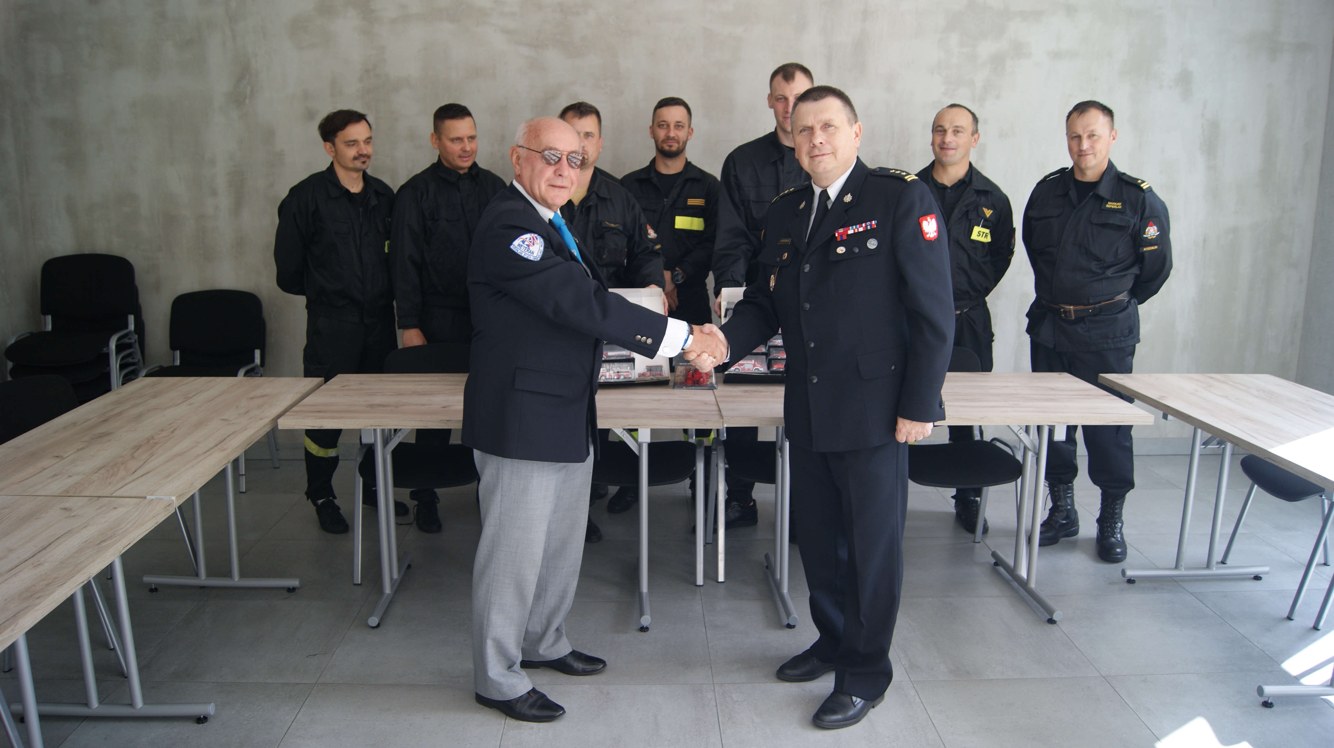 06.10.2022 na terenie Jednostki Ratowniczo-Gaśniczej nr 1 w Koszalinie przy ul. Monte Casino 10, miała miejsce przemiła wizyta Pana ppłk. w st. spocz. Jerzego Kurowskiego, Wiceprezesa Zarządu Głównego SKMP ONZ, jednoczenie Prezesa Koła nr 18 w Koszalinie z niespodziewanym prezentem. Gość Komendy Miejskiej PSP w Koszalinie przekazał na ręce Komendanta Miejskiego PSP w Koszalinie st. bryg. Jacka Szpuntowicza w obecności Zastępcy Dowódcy JRG 1 mł. bryg. Mariusza Szperlaka kolekcję modeli aut pożarniczych.