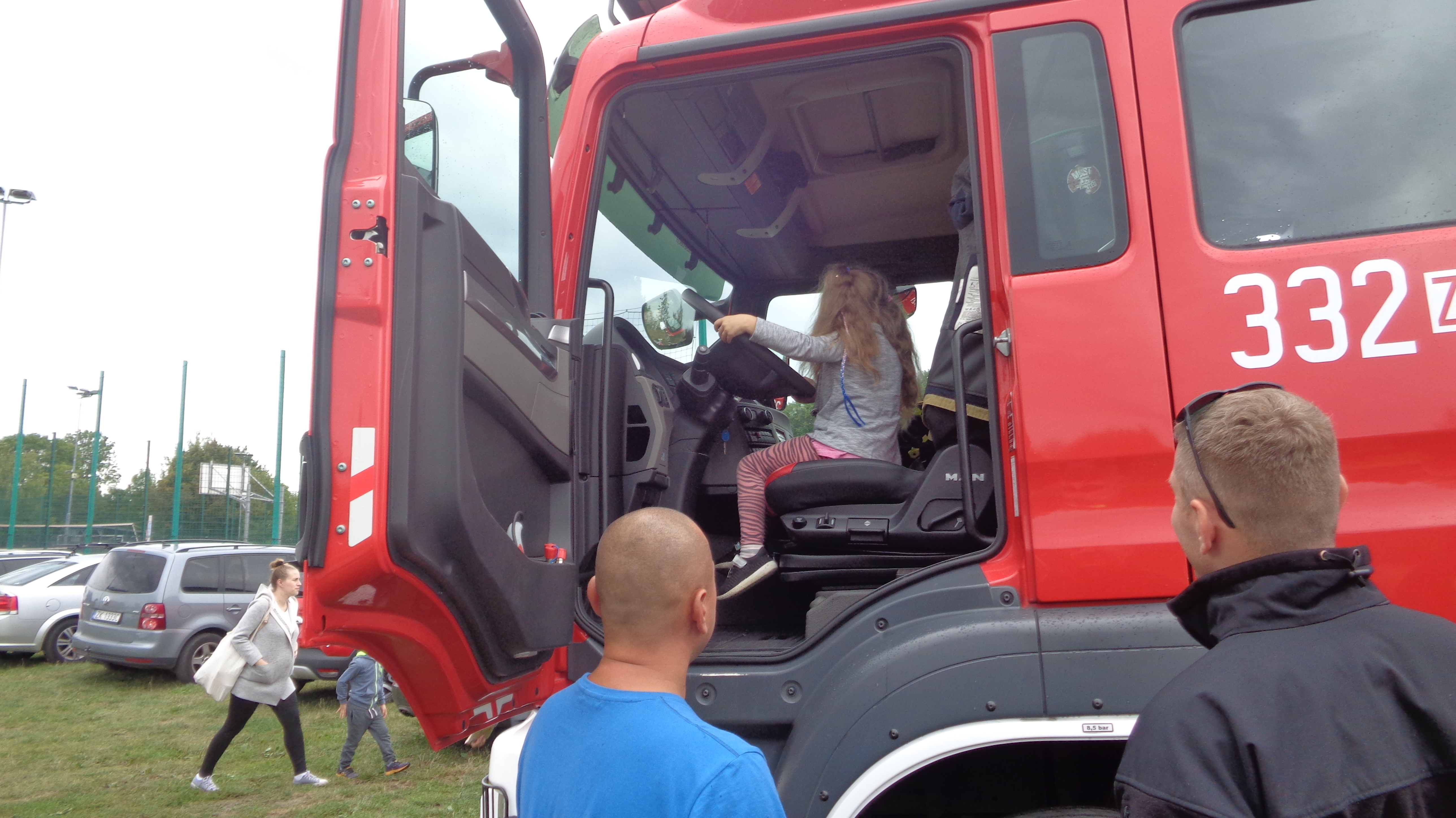 Dzieci mogły zapoznać się z zawodem strażaka, ubrać hełm strażacki, zobaczyć od środka jak wygląda kabina pojazdu, w której przemieszczają się strażacy do akcji.