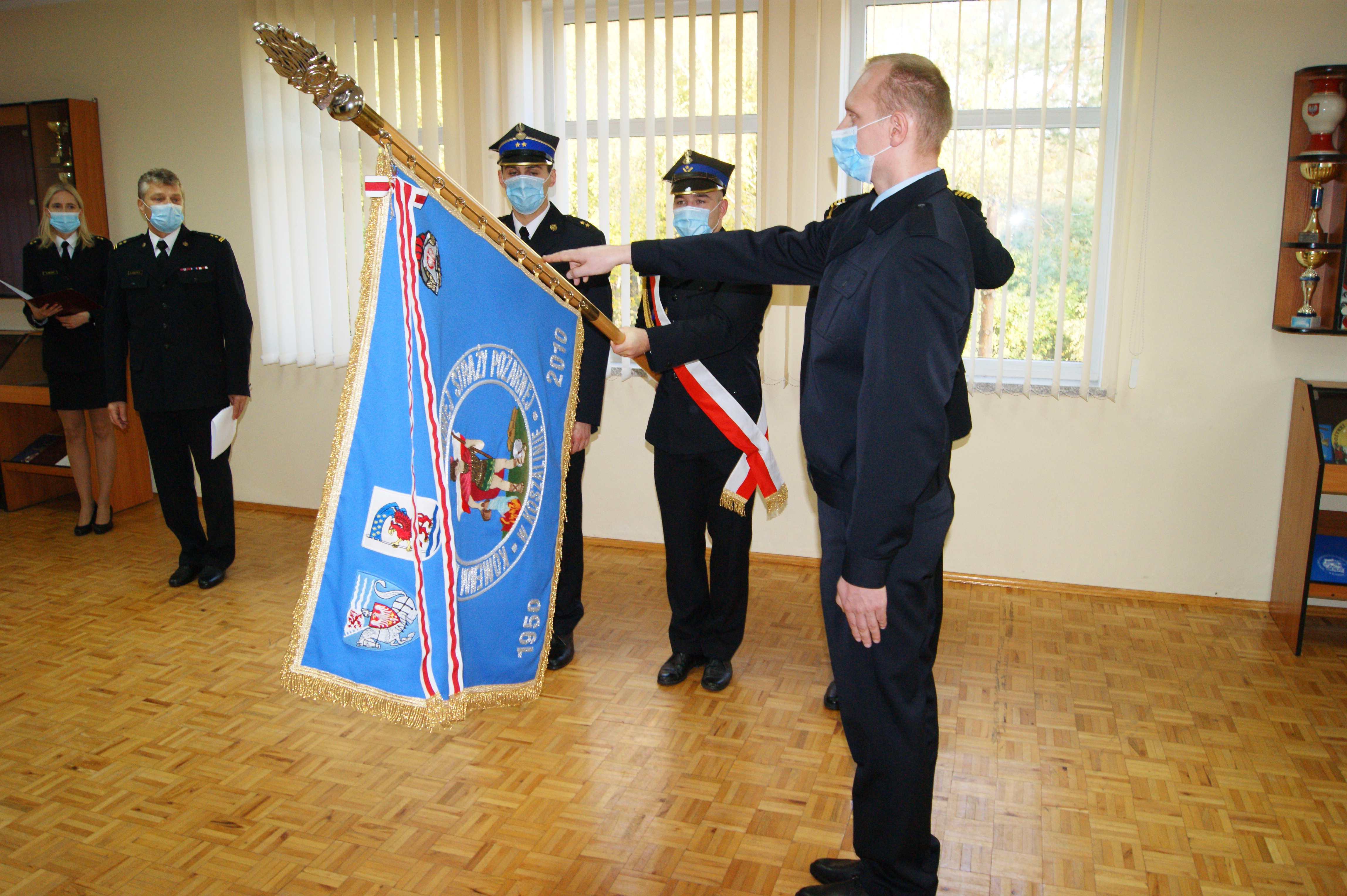 23 października br. w świetlicy Komendy Miejskiej Państwowej Straży Pożarnej w Koszalinie odbyła się uroczysta zbiórka, podczas której, w obecności przełożonych oraz kadry Komendy, str. Krystian Cichowicz złożył ślubowanie na sztandar KM PSP w Koszalinie i z rąk bryg. Adama Gonciarza zastępcy komendanta miejskiego PSP w Koszalinie odebrał akt ślubowania.