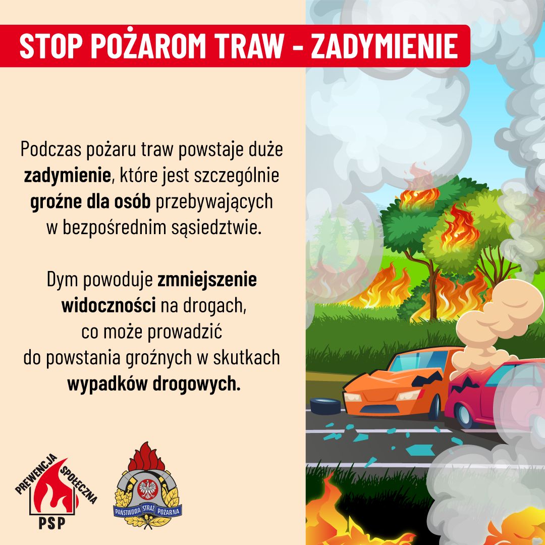 Przełom zimy i wiosny to okres, w których wyraźnie wzrasta liczba pożarów traw na łąkach i nieużytkach rolnych. Spowodowane jest to wypalaniem suchych traw i pozostałości roślinnych.
