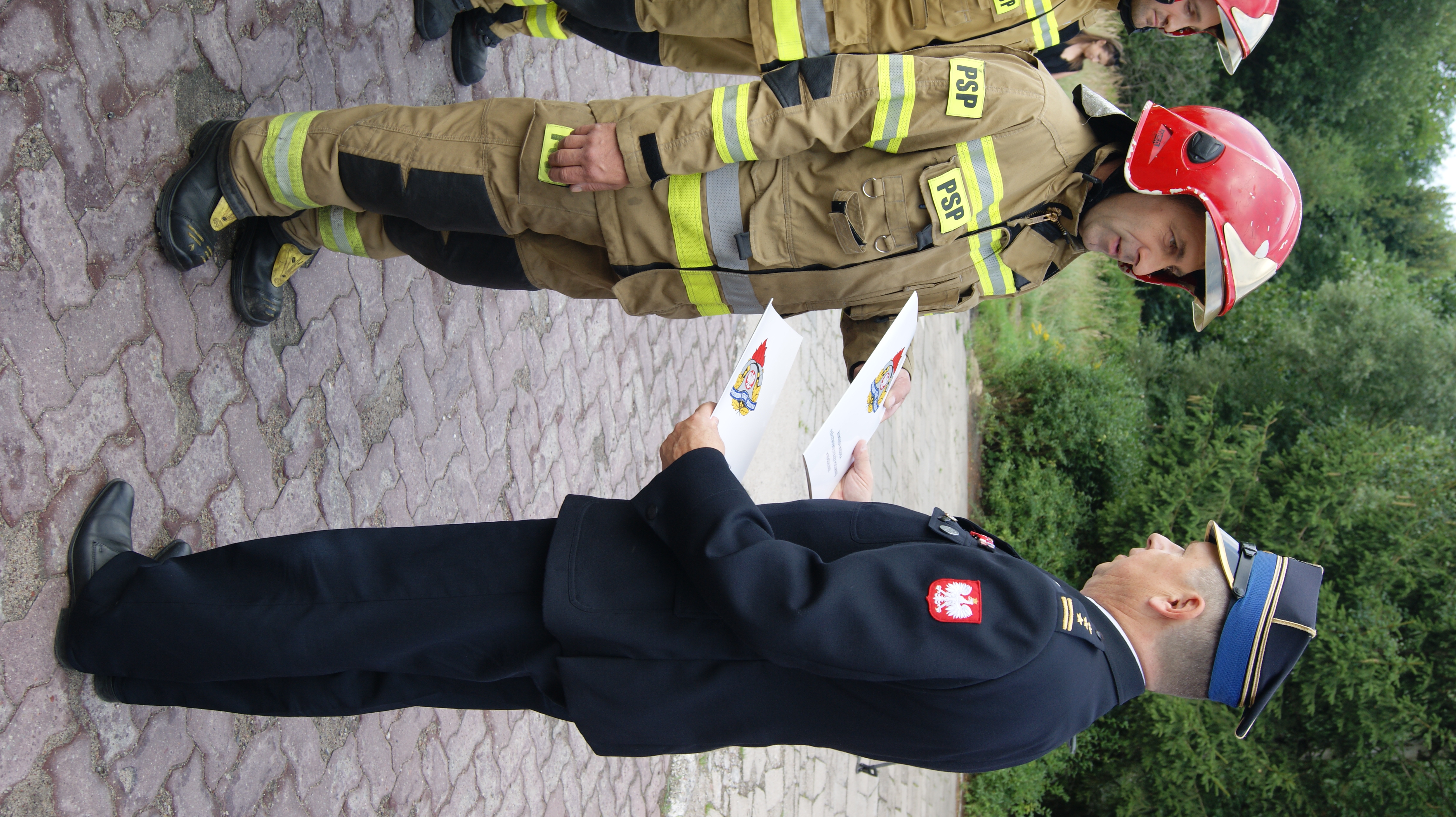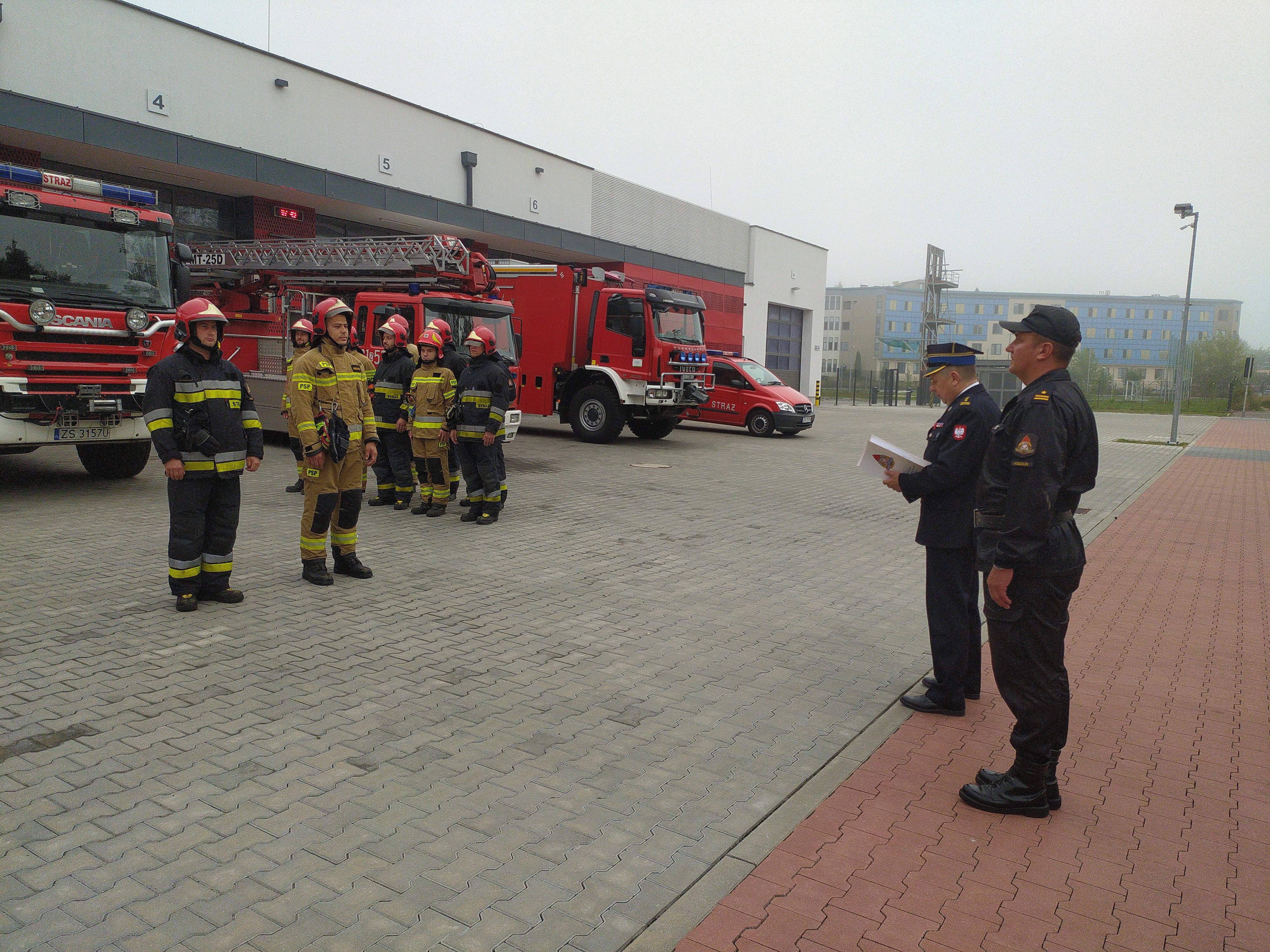 Za zaangażowanie w realizację zadania misji zagranicznej wyróżnieni zostali: asp. Andrzej Szymański, mł. asp. Łukasz Neumann z Jednostki Ratowniczo-Gaśniczej nr 2 w Koszalinie oraz mł. asp. Krzysztof Roman, sekc. Bartosz Babirecki z Jednostki Ratowniczo-Gaśniczej nr 1 w Koszalinie. Wręczenia decyzji o nagrodach dokonał p.o. Komendanta Miejskiego PSP w Koszalinie st. bryg. Jacek Szpuntowicz w obecności dowódzctwa Jednostek Ratowniczo-Gaśniczych, bryg. Zygmunta Adamczyka oraz mł. bryg. Szymona Wasiaka.