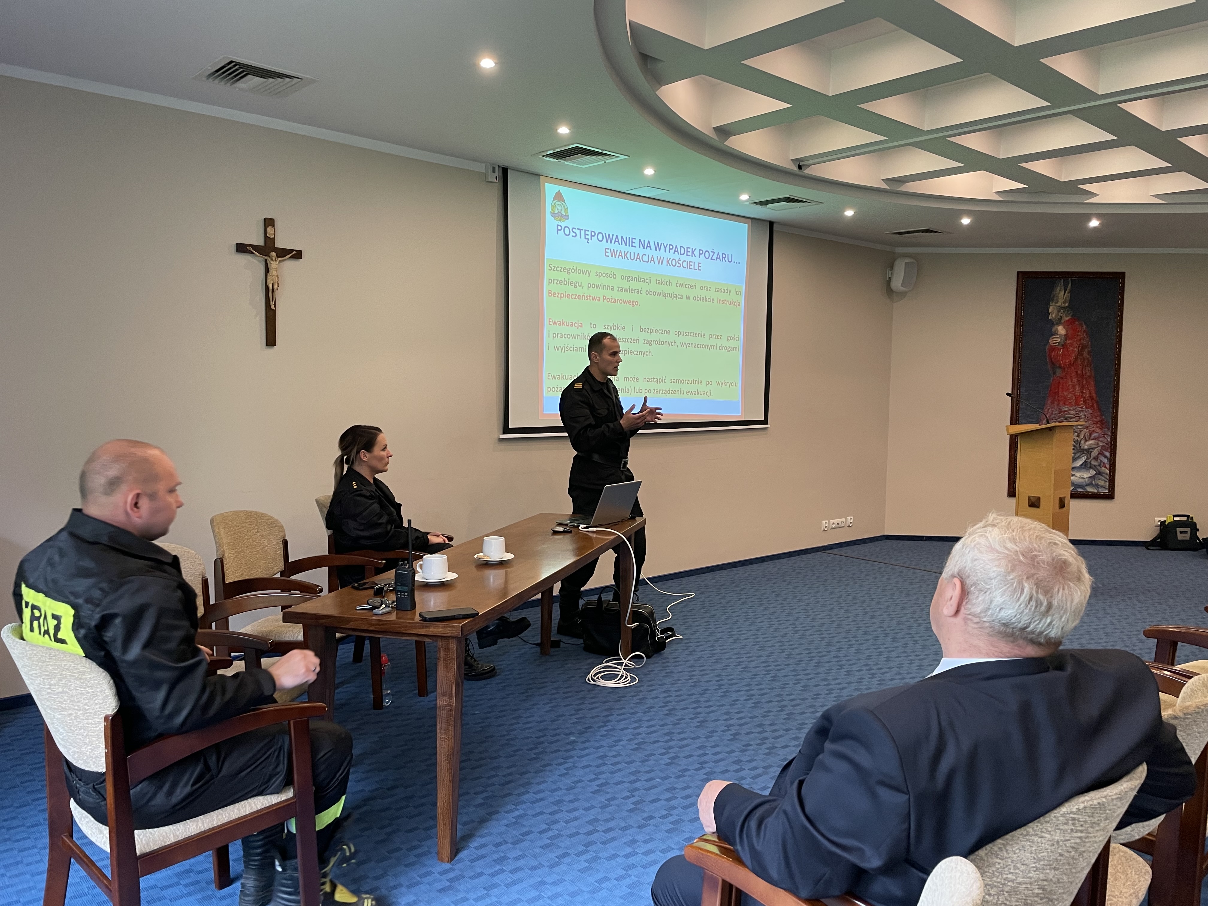 Przedmiotowe szkolenie miało na celu na celu poszerzenie świadomości i wiedzy księży z zakresu przepisów ochrony przeciwpożarowej.